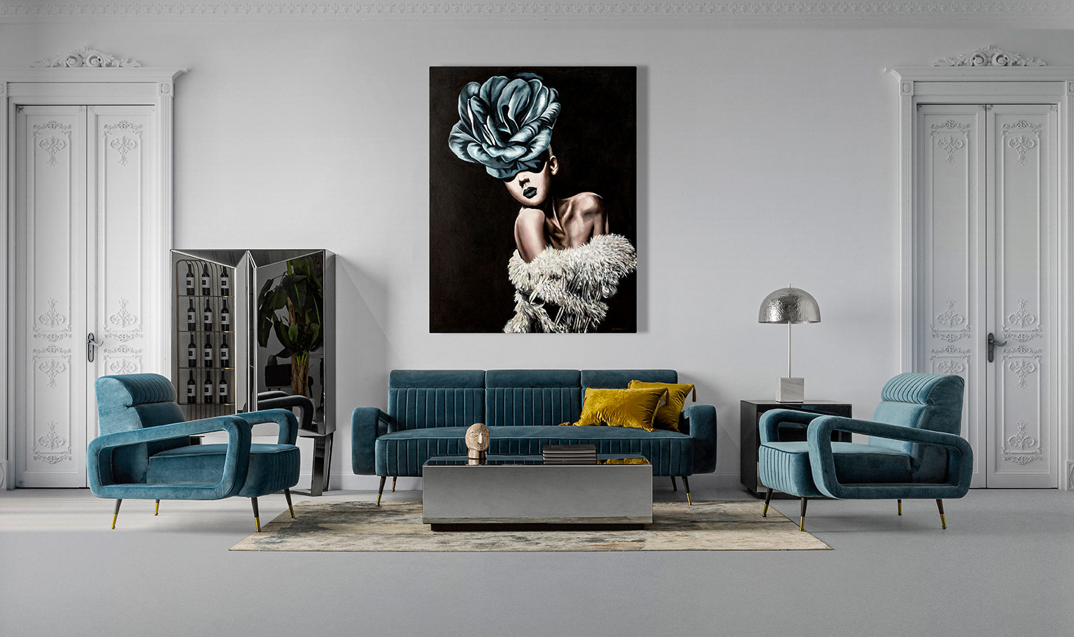 ALFOMBRA RECTANGULAR AIDA, EN COLOR TONOS DE AZUL, DE ESTILO CLÁSICO. FABRICADO EN VISCOSA. BACKING: 43% ALGODÓN, 33% POLIÉSTER, 20% LATEX, 4% VISCOSA.