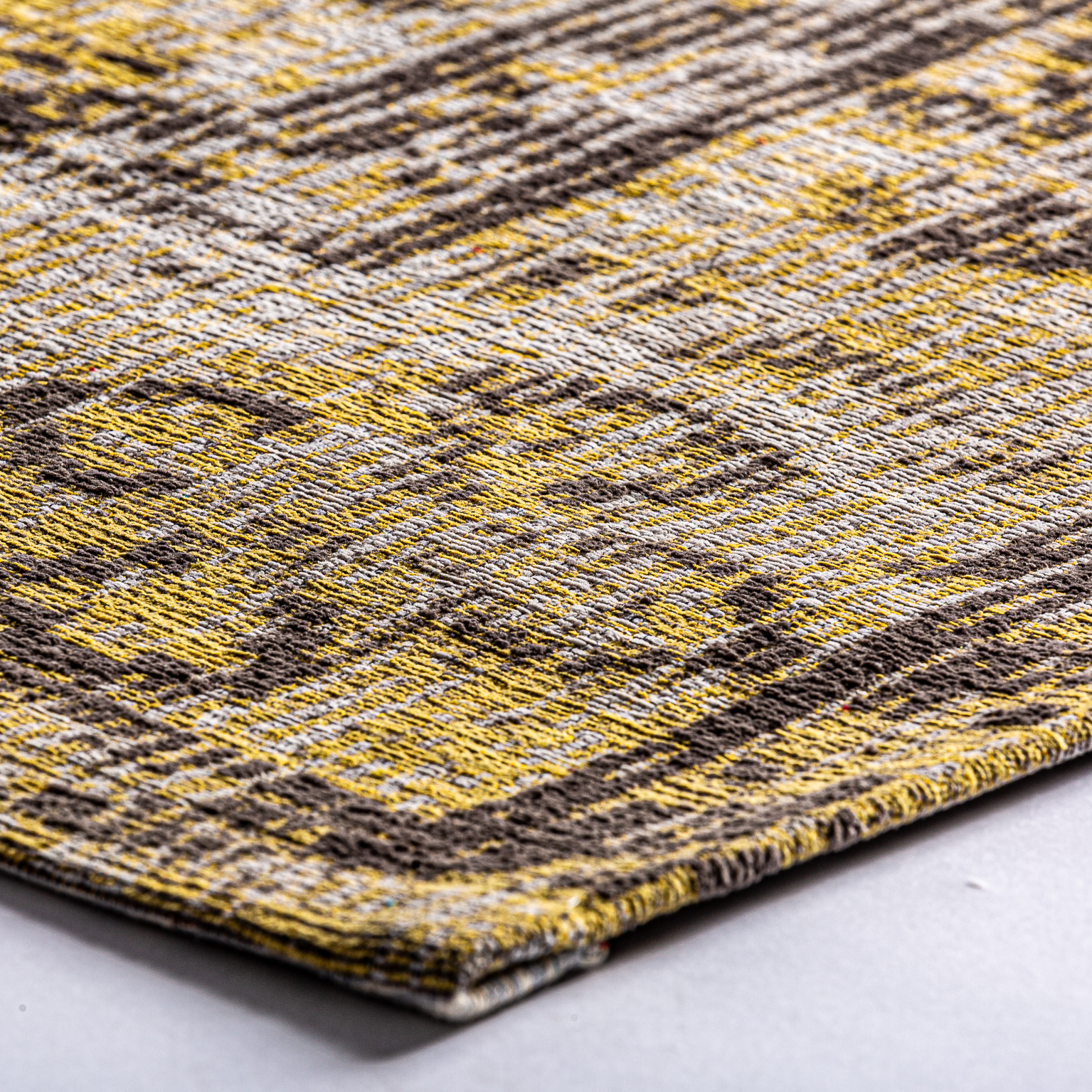 ALFOMBRA RECTANGULAR WIRA, EN COLOR OCRE, DE ESTILO CLÁSICO. FABRICADO EN VISCOSA, COMBINADO CON POLIÉSTER Y ALGODÓN. 41% ALGODÓN Y 59% POLIÉSTER.