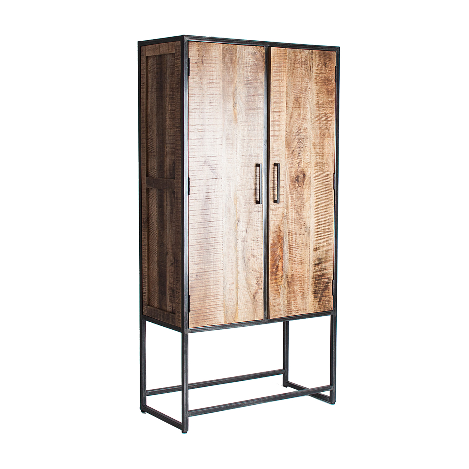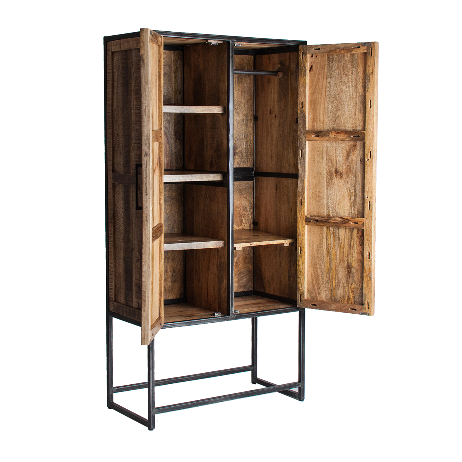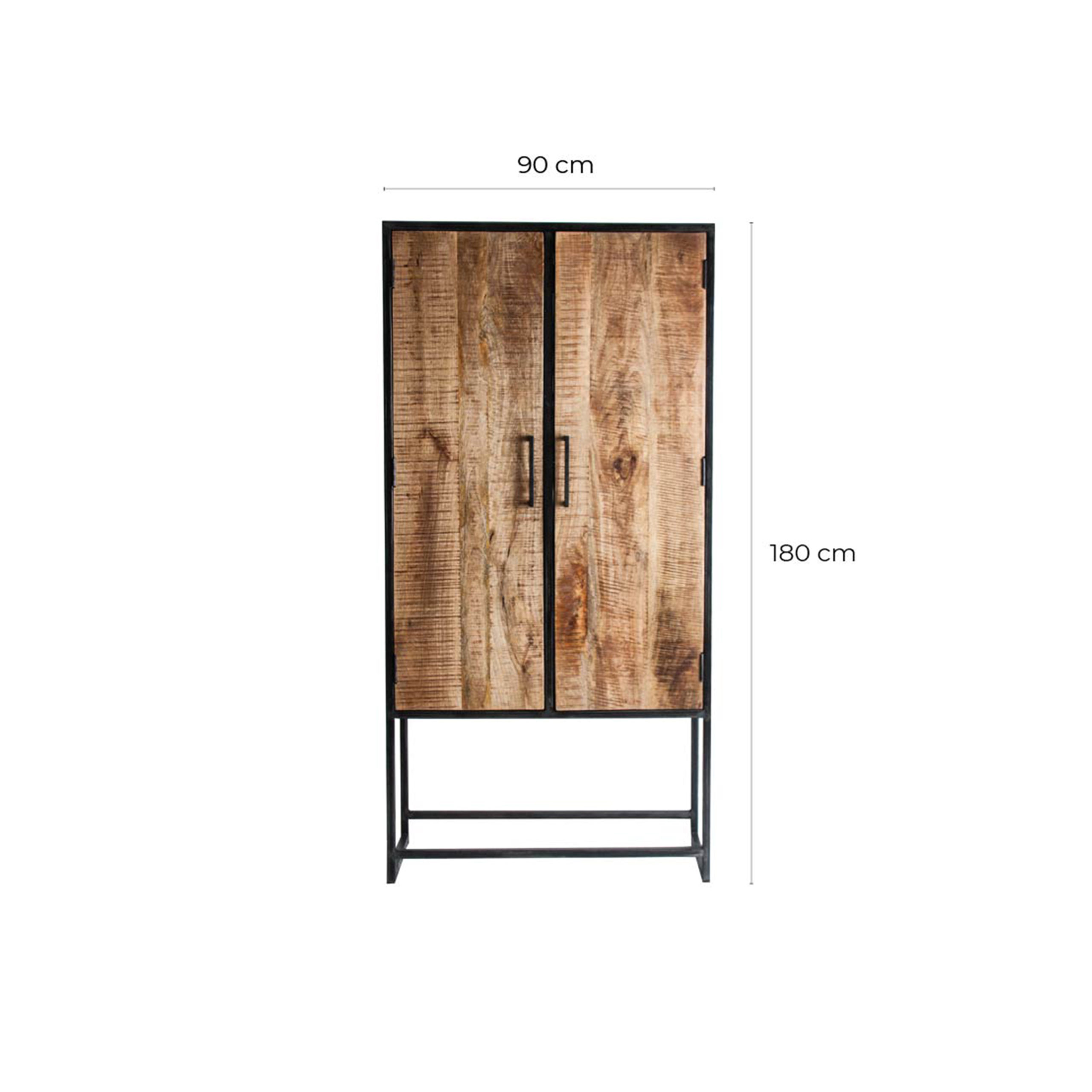 ARMARIO RECTANGULAR GAFFNEY, EN COLOR NEGRO/NATURAL ENVEJECIDO, DE ESTILO INDUSTRIAL. FABRICADO EN MADERA DE MANGO.