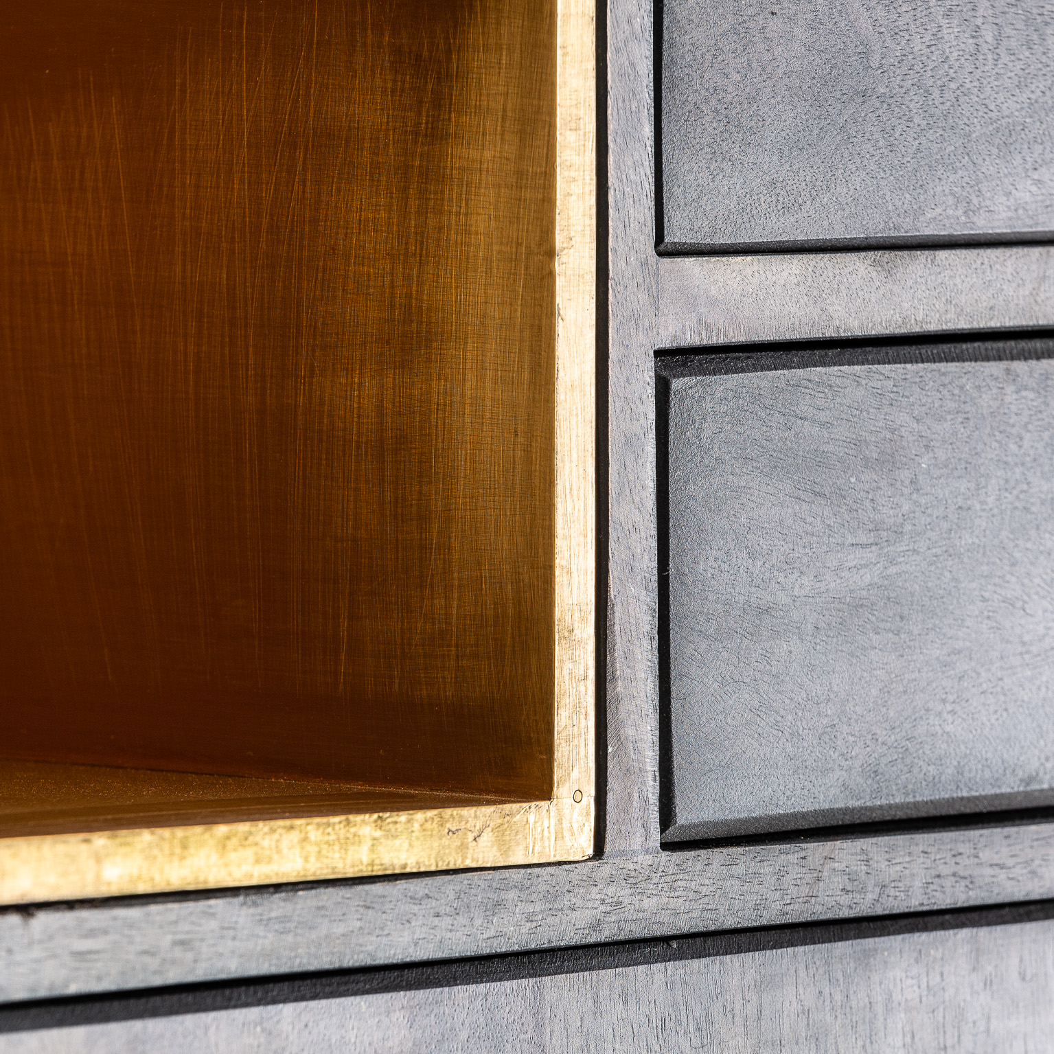 ARMARIO VEX, EN COLOR GRIS/ORO, DE ESTILO ART DECO. FABRICADO EN MADERA DE MANGO.