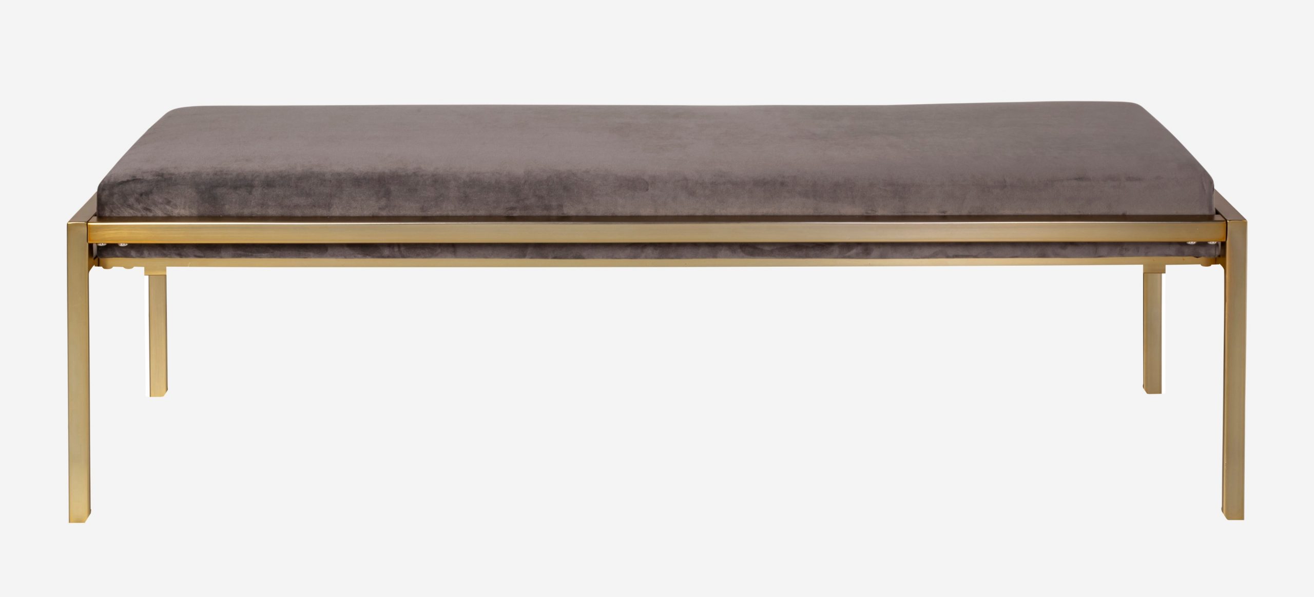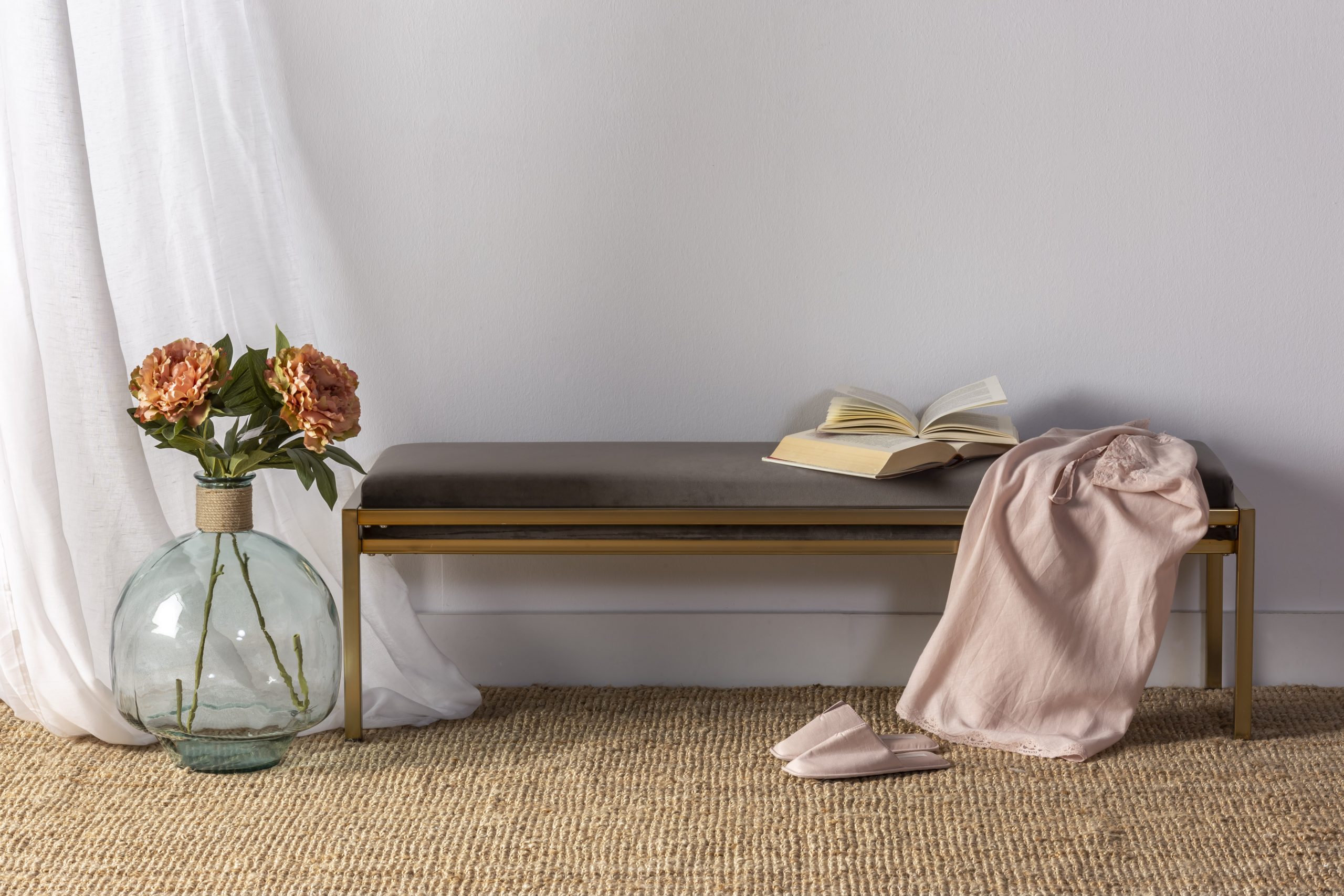 El banco Proud será el complemento ideal para los dormitorios más sofisticados. Déjate seducir por la suavidad de su tapicería de terciopelo y su estructura en tono latón, de irresistible estilo vintage.