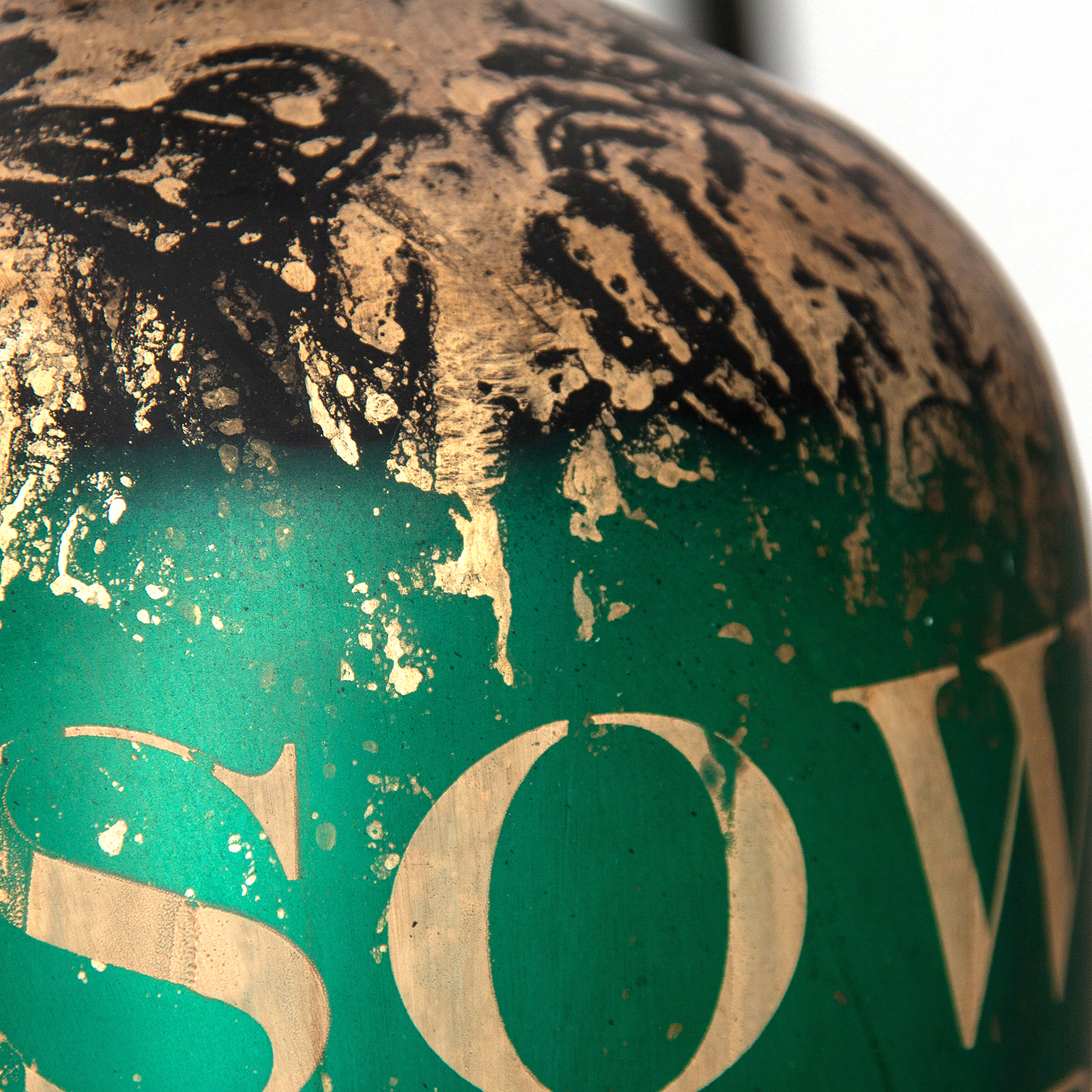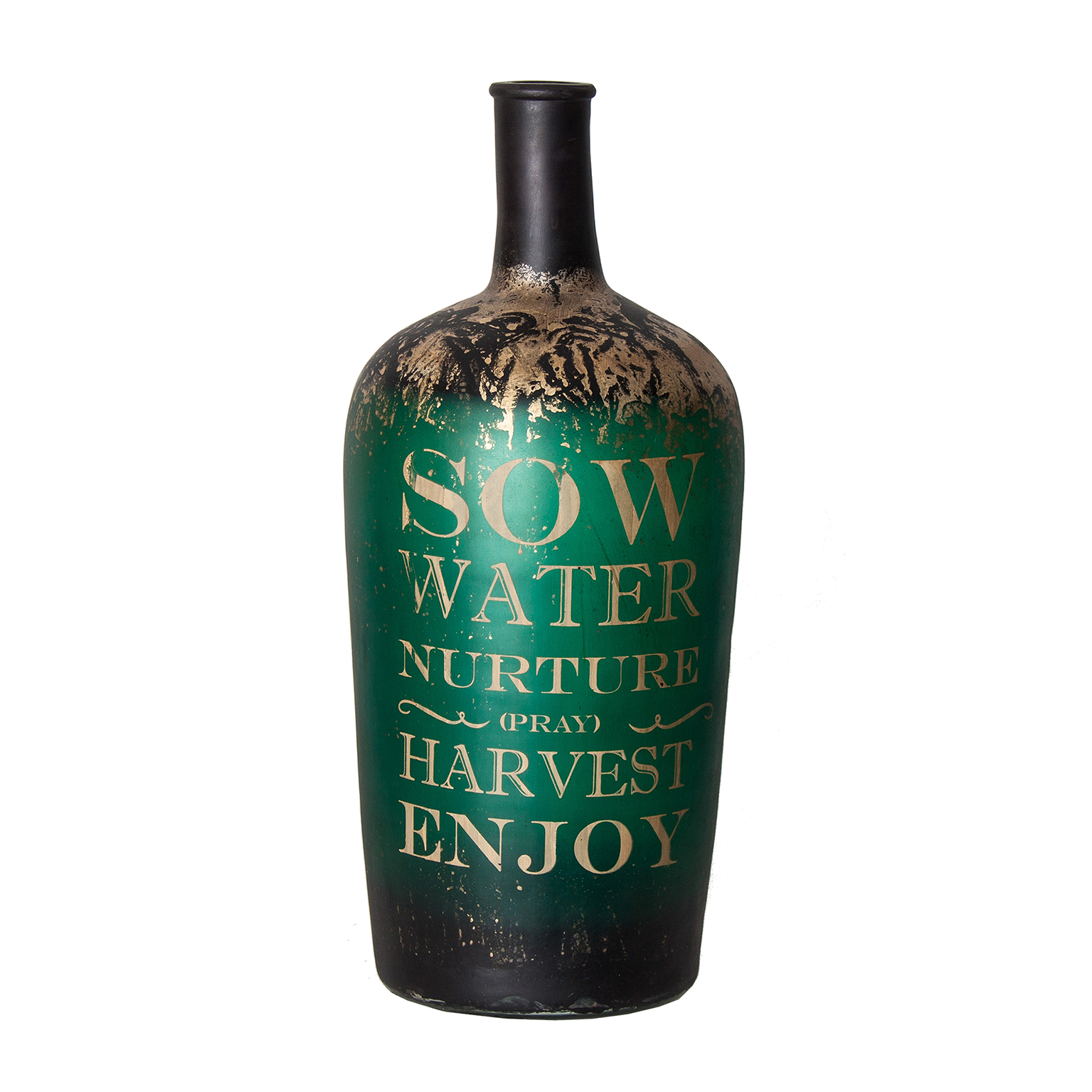 BOTELLA DECORATIVA BOSLER, EN COLOR VERDE ENVEJECIDO, DE ESTILO VINTAGE. FABRICADO EN VIDRIO.