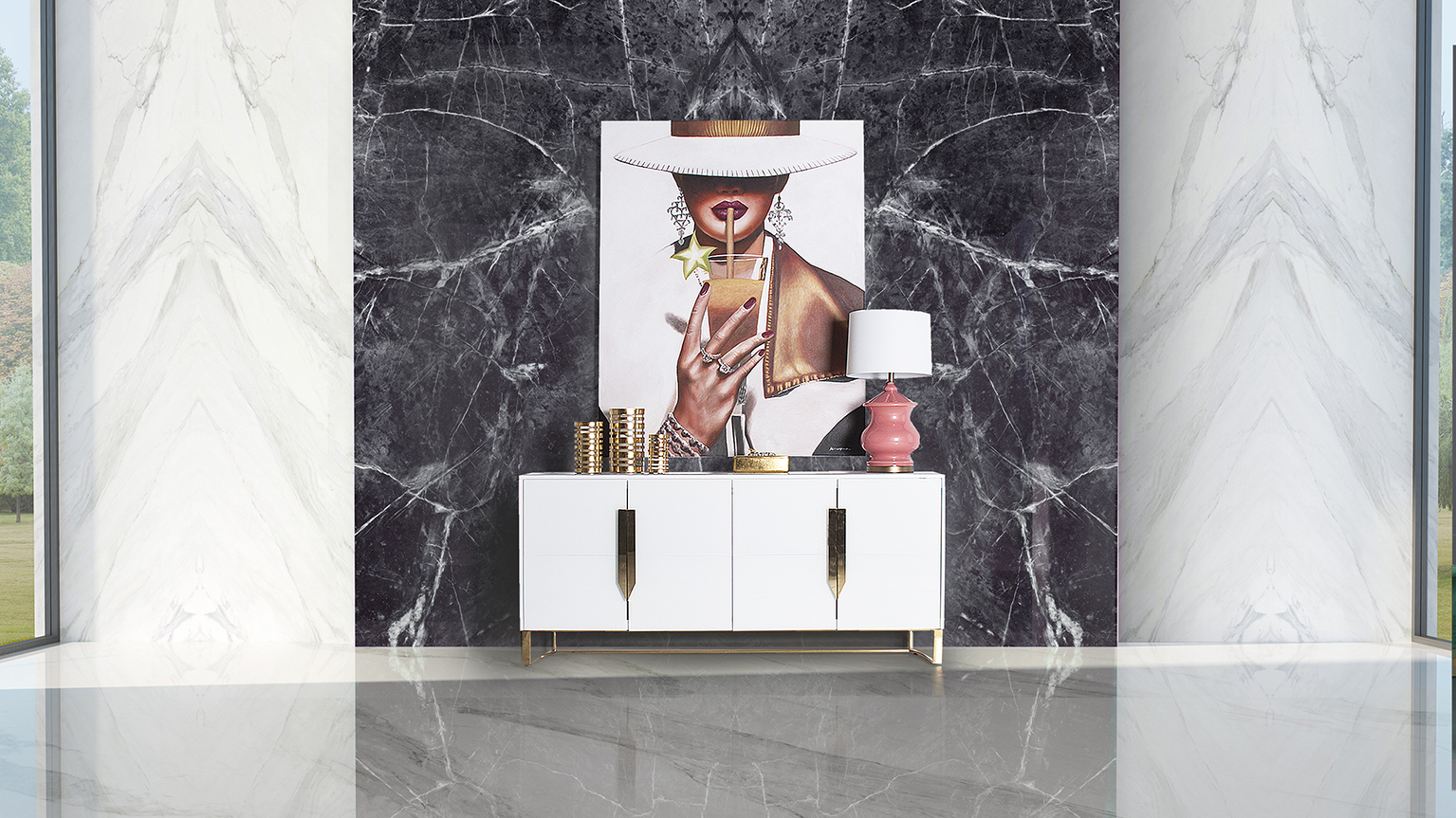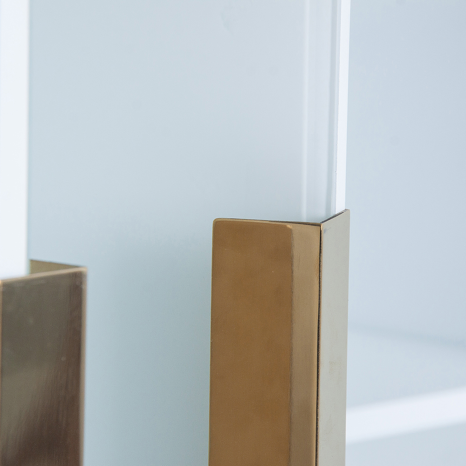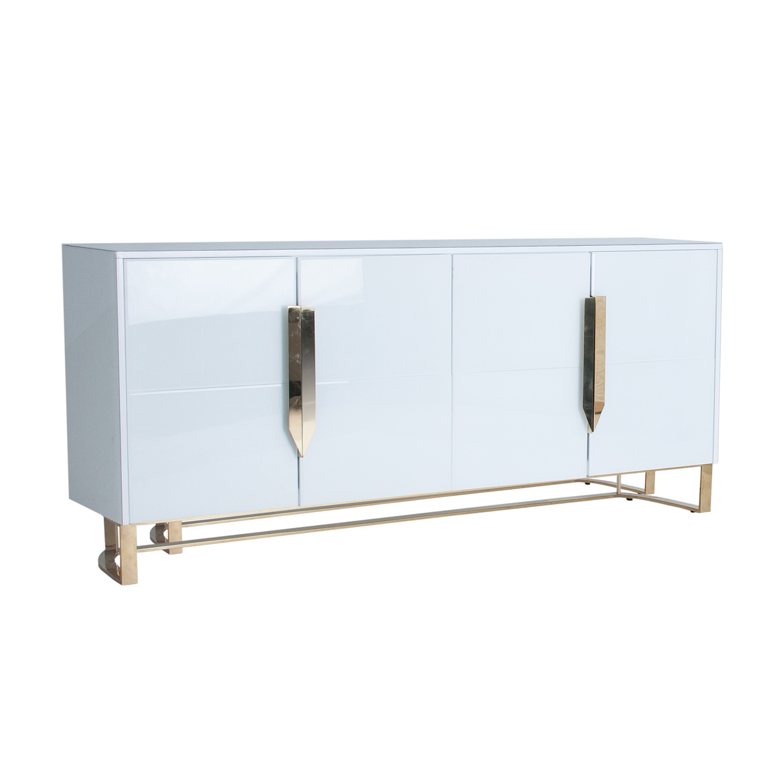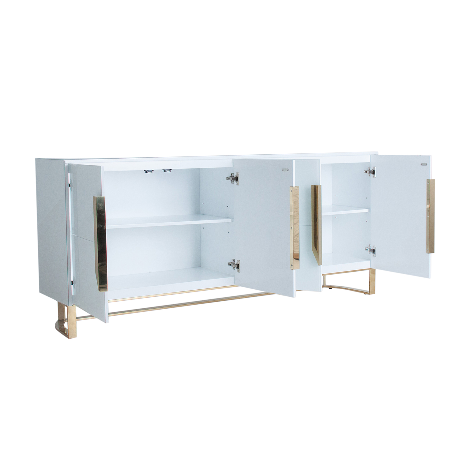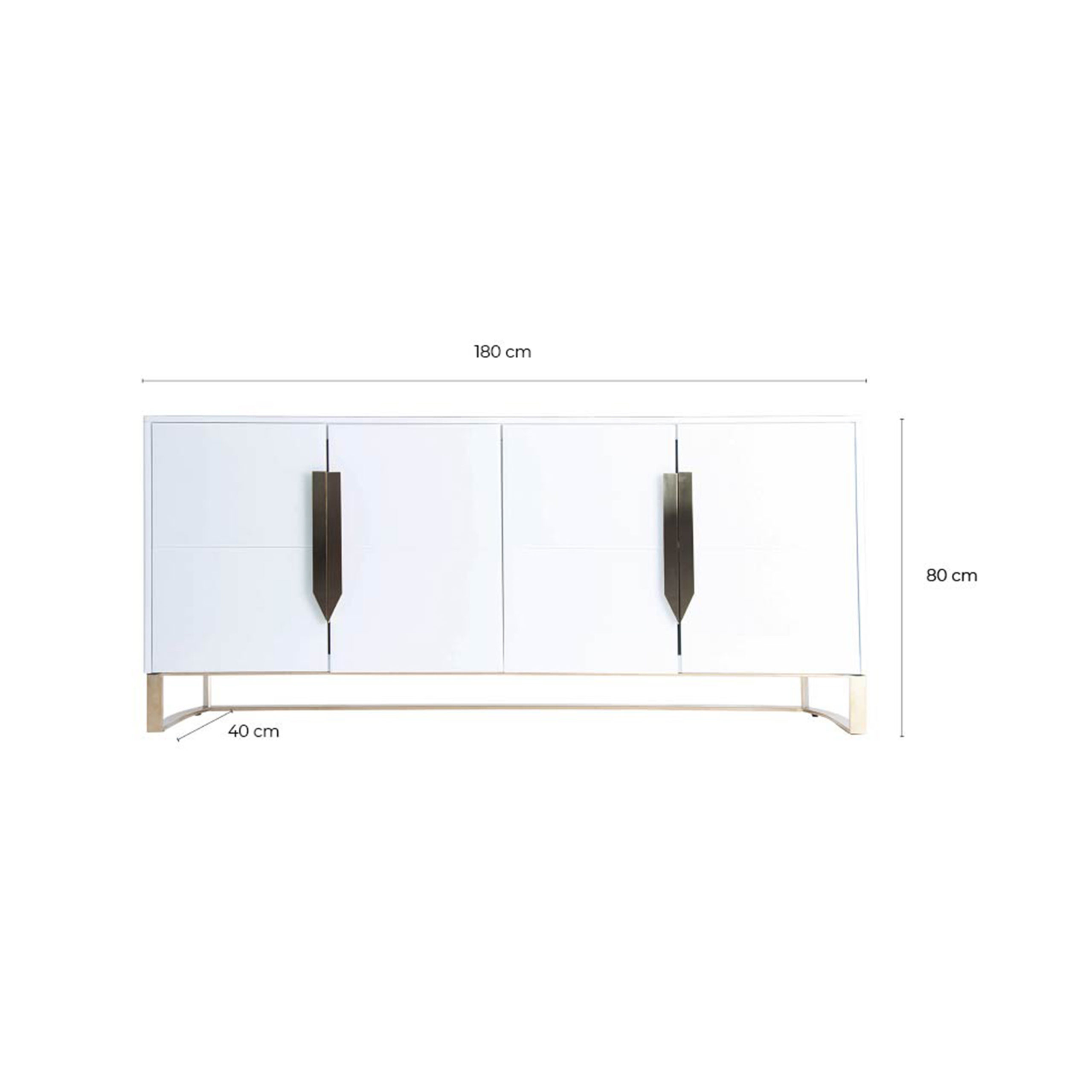 BUFFET RECTANGULAR KATS, EN COLOR BLANCO/ORO BRILLO, DE ESTILO ART DECO. FABRICADO EN ESPEJO, COMBINADO CON ACERO.
