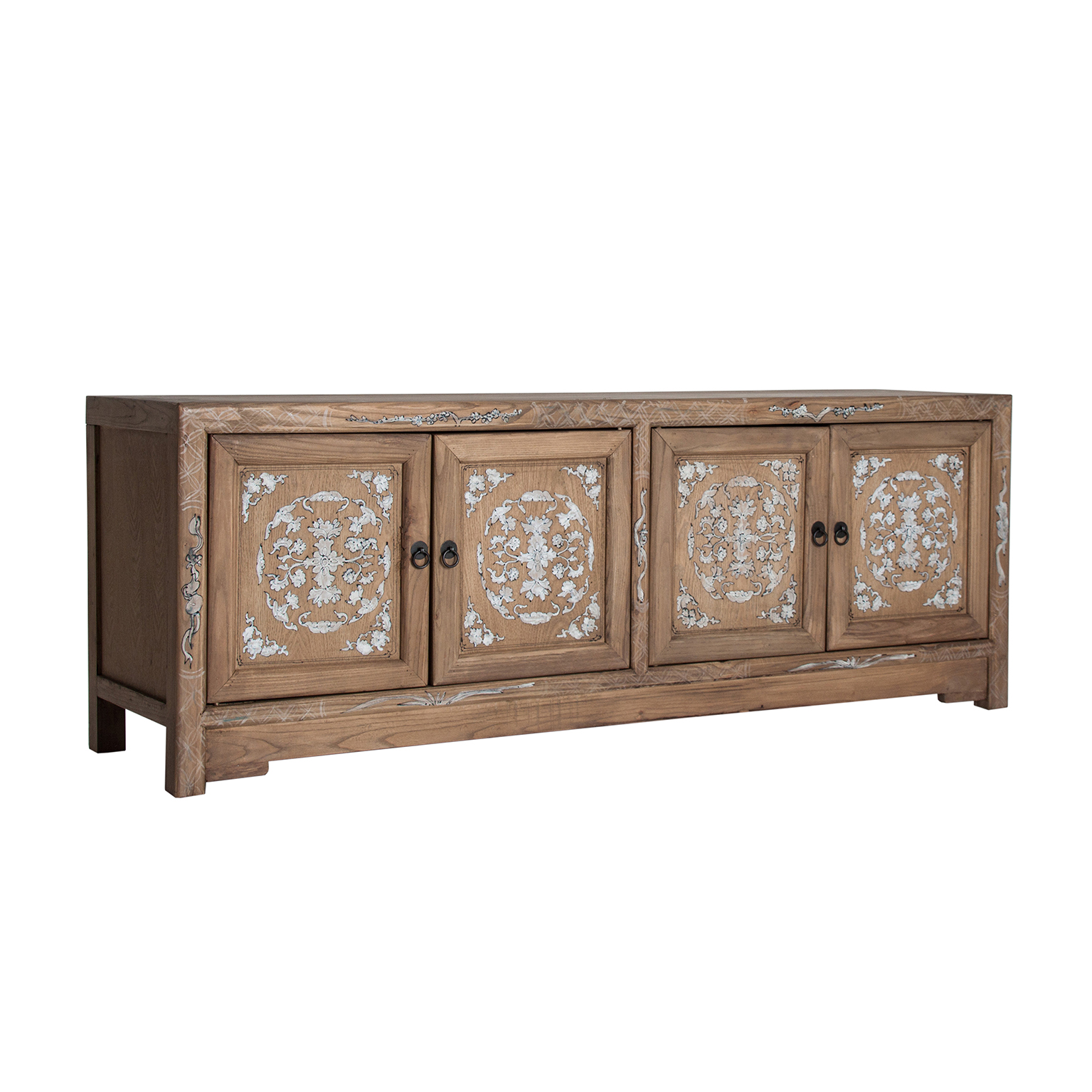 BUFFET RECTANGULAR MACAO, EN COLOR NATURAL/BLANCO, DE ESTILO ORIENTAL. FABRICADO EN MADERA DE PINO RECICLADO.