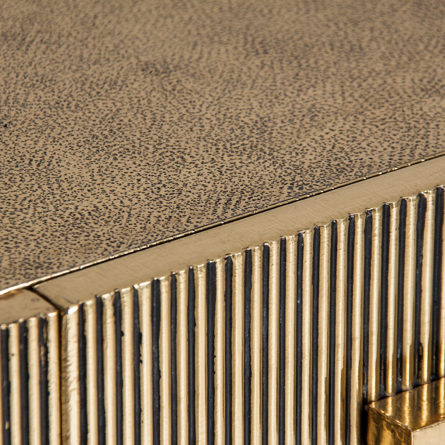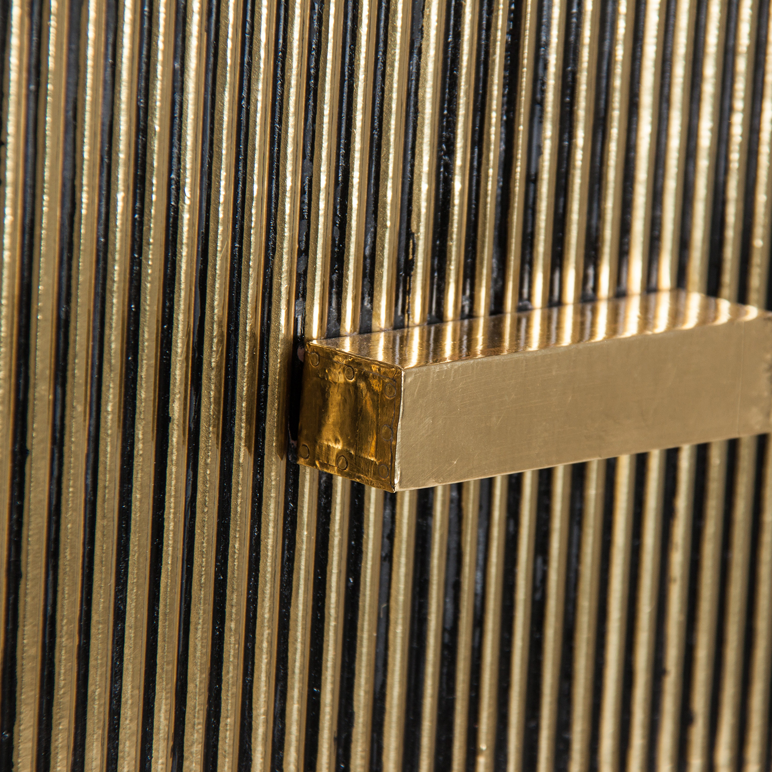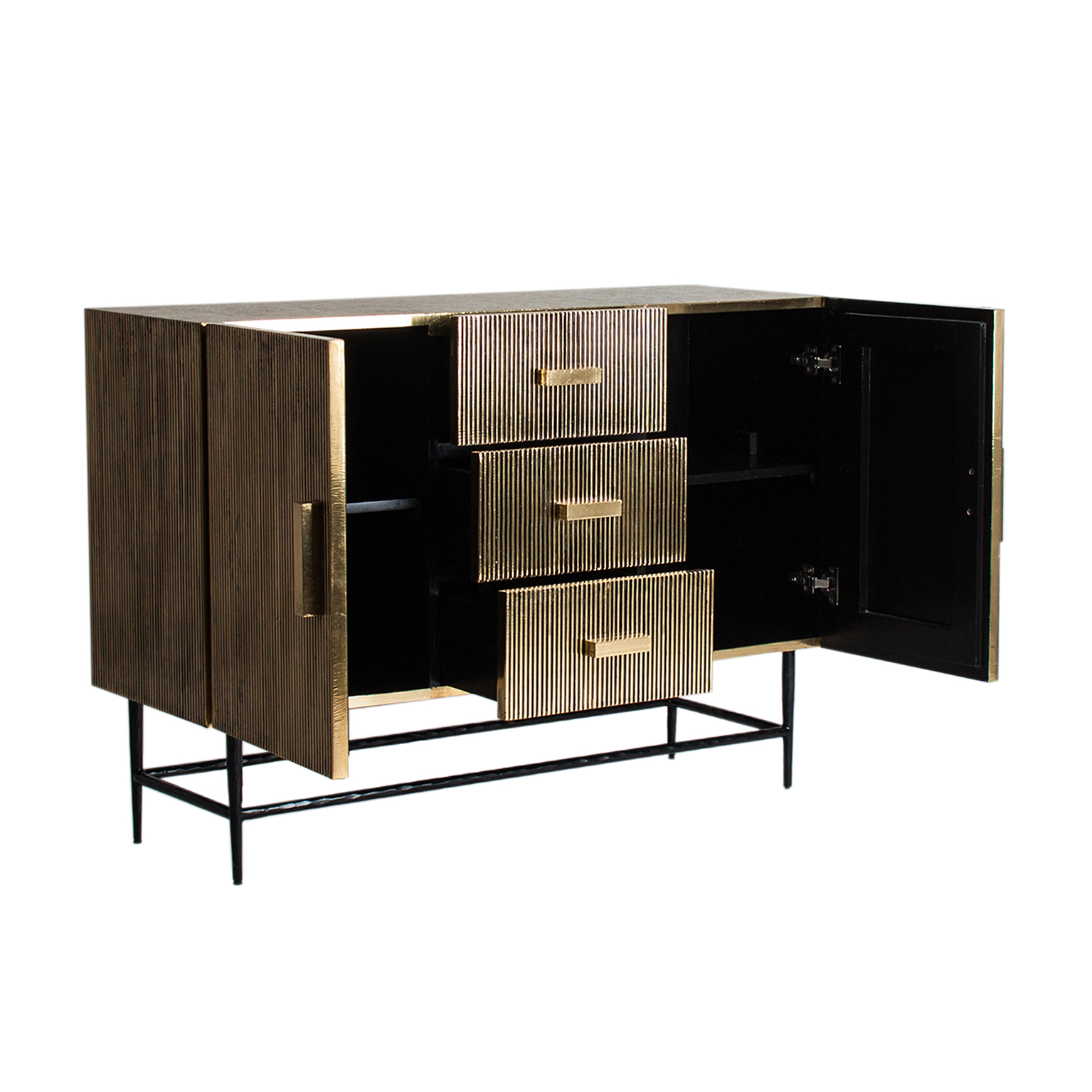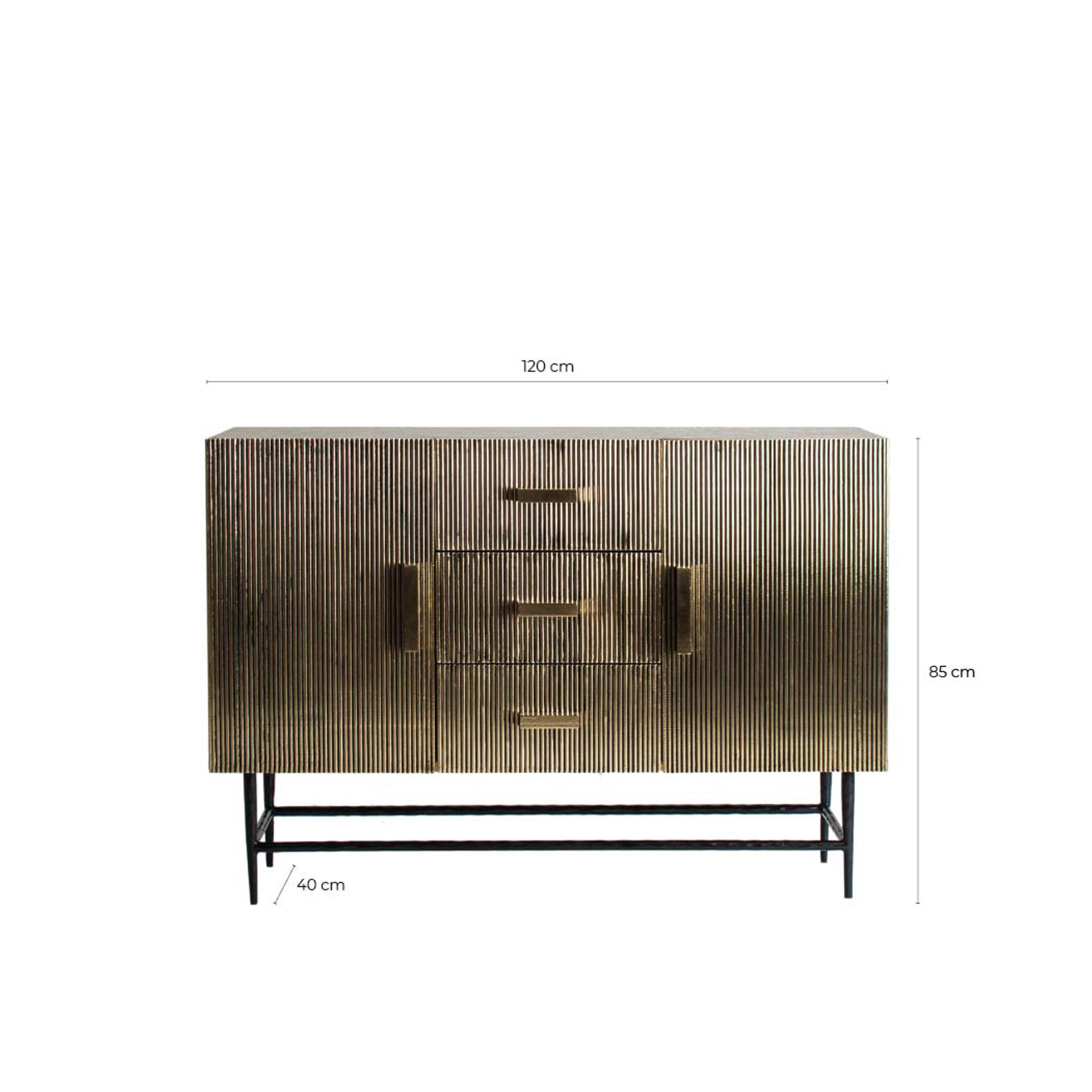 BUFFET RECTANGULAR VALBRUNA, EN COLOR ORO/NEGRO VIEJO, DE ESTILO ART DECO. FABRICADO EN LATÓN, COMBINADO CON DM Y HIERRO. PATAS DE HIERRO. PRODUCTO DESMONTABLE.
