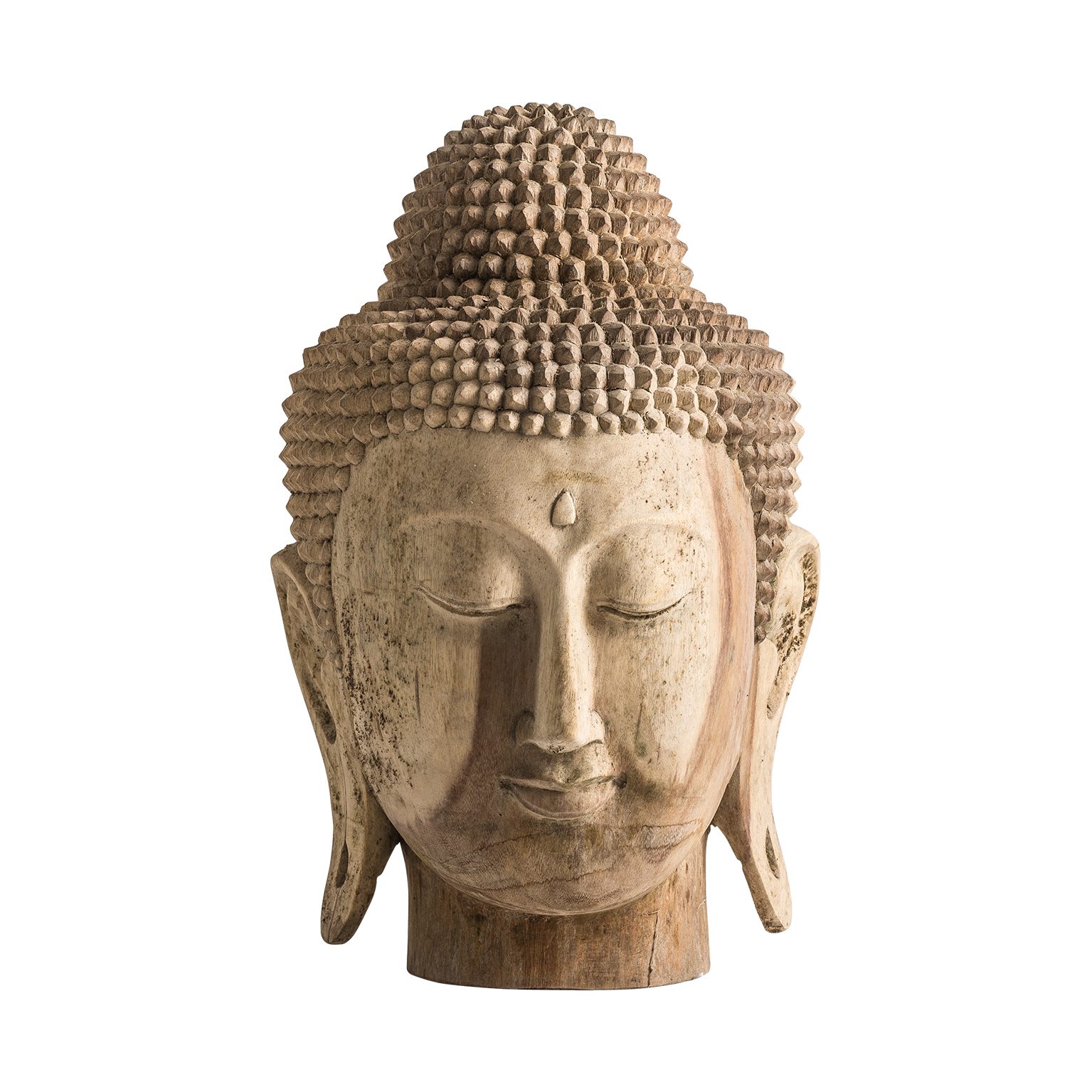 BUSTO BUDHA, EN COLOR NATURAL, DE ESTILO ORIENTAL. FABRICADO EN MADERA SUAR.