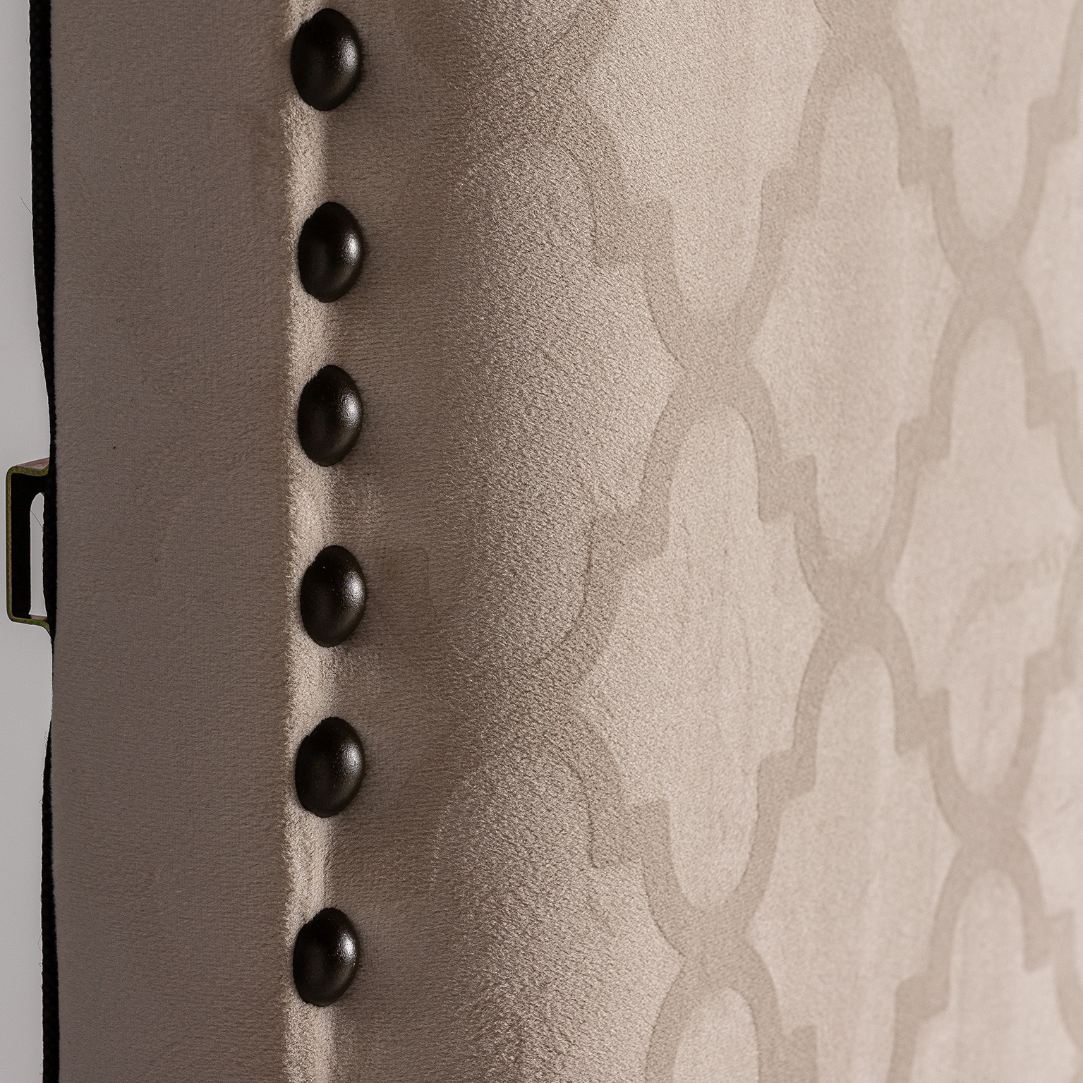 CABEZAL BUK, EN COLOR BEIGE ESTAMPADO, DE ESTILO ART DECO. FABRICADO EN MADERA DE PINO, COMBINADO CON TERCIOPELO.