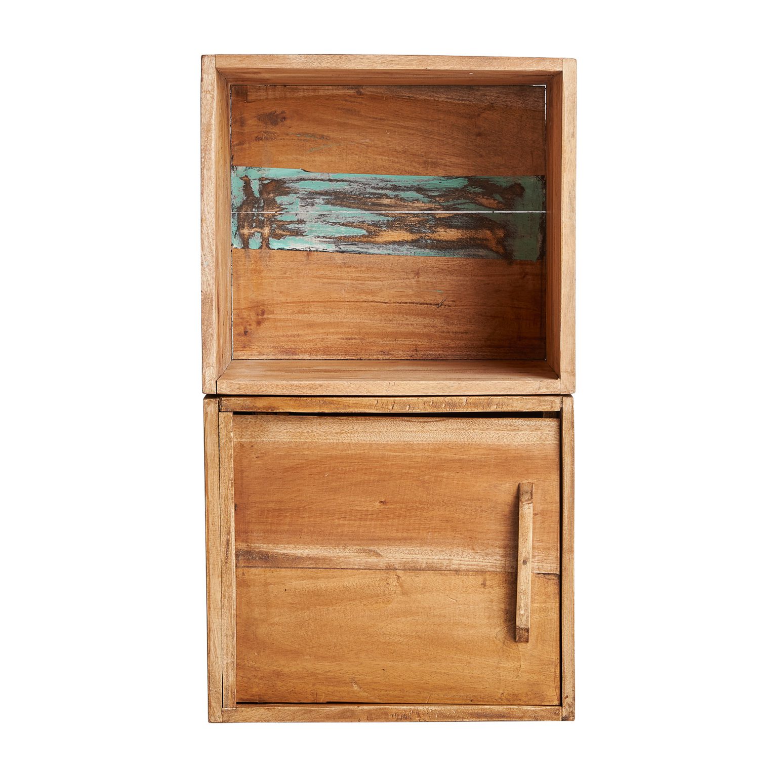 CAJA RECTANGULAR DELLACH, EN COLOR NATURAL ENVEJECIDO, DE ESTILO INDUSTRIAL. FABRICADO EN MADERA MAHOGANI, COMBINADO CON MADERA DE ACACIA Y MADERA DE PINO RECICLADO. MADERAS RECICLADAS DE MANGO.
