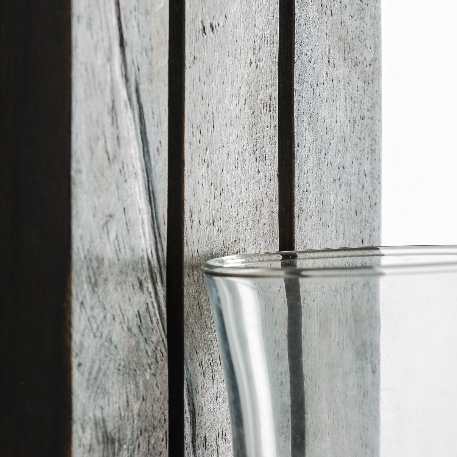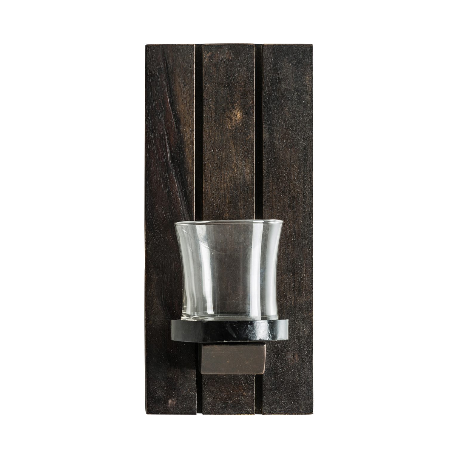 CANDELABRO, EN COLOR TRANSPARENTE, DE ESTILO PROVENZAL. FABRICADO EN DM, COMBINADO CON MADERA TROPICAL Y ESPEJO.