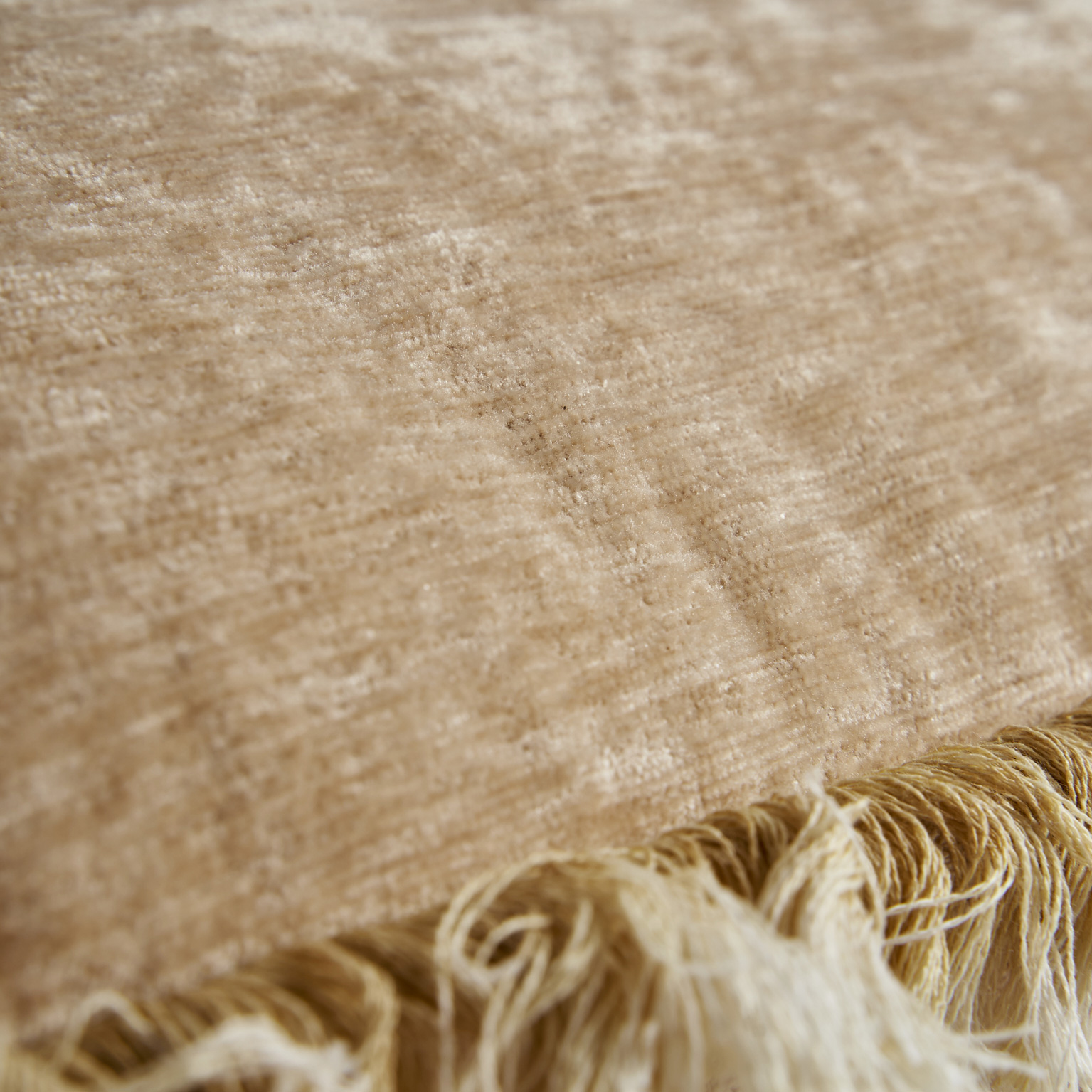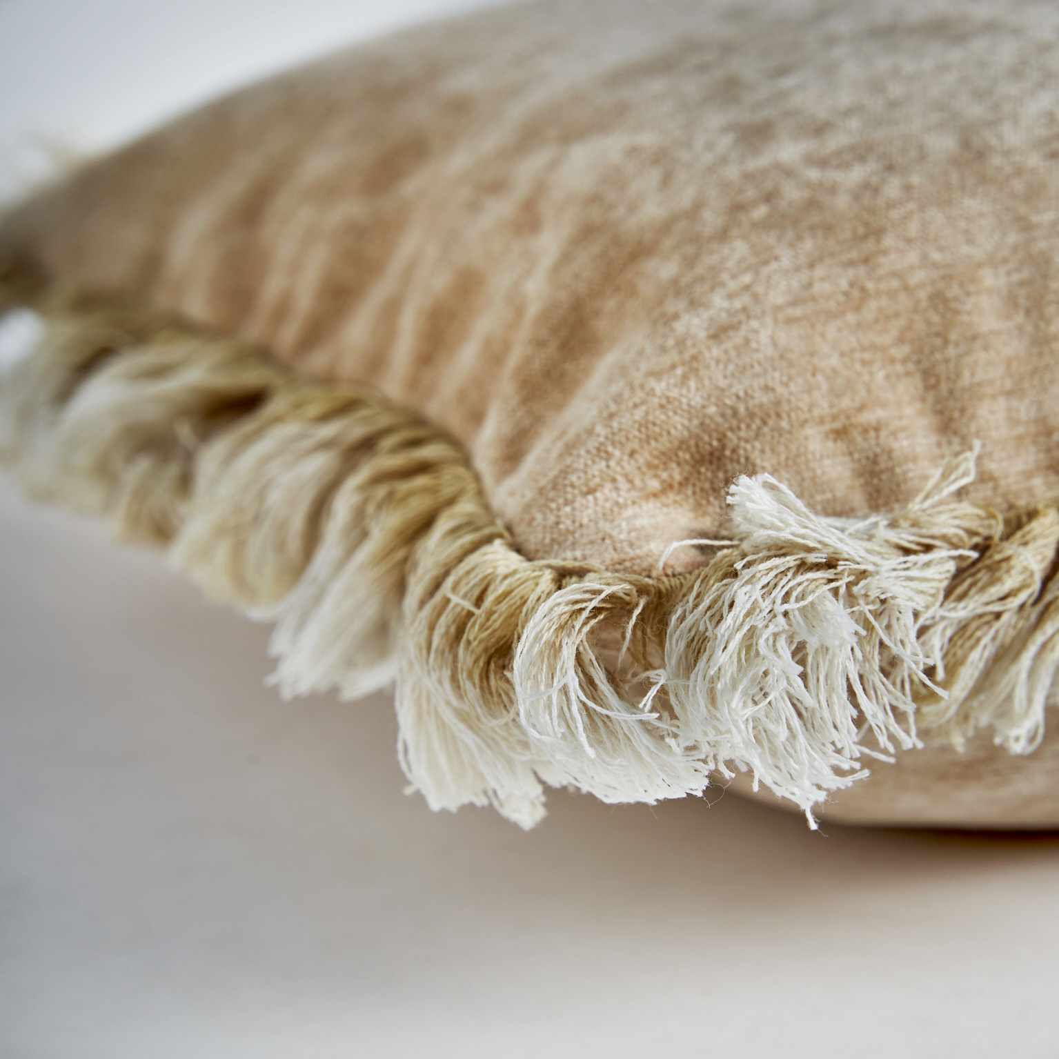 COJÍN RECTANGULAR AGLAIA, EN COLOR BEIGE, DE ESTILO CLÁSICO. FABRICADO EN TERCIOPELO, COMBINADO CON PLUMAS.