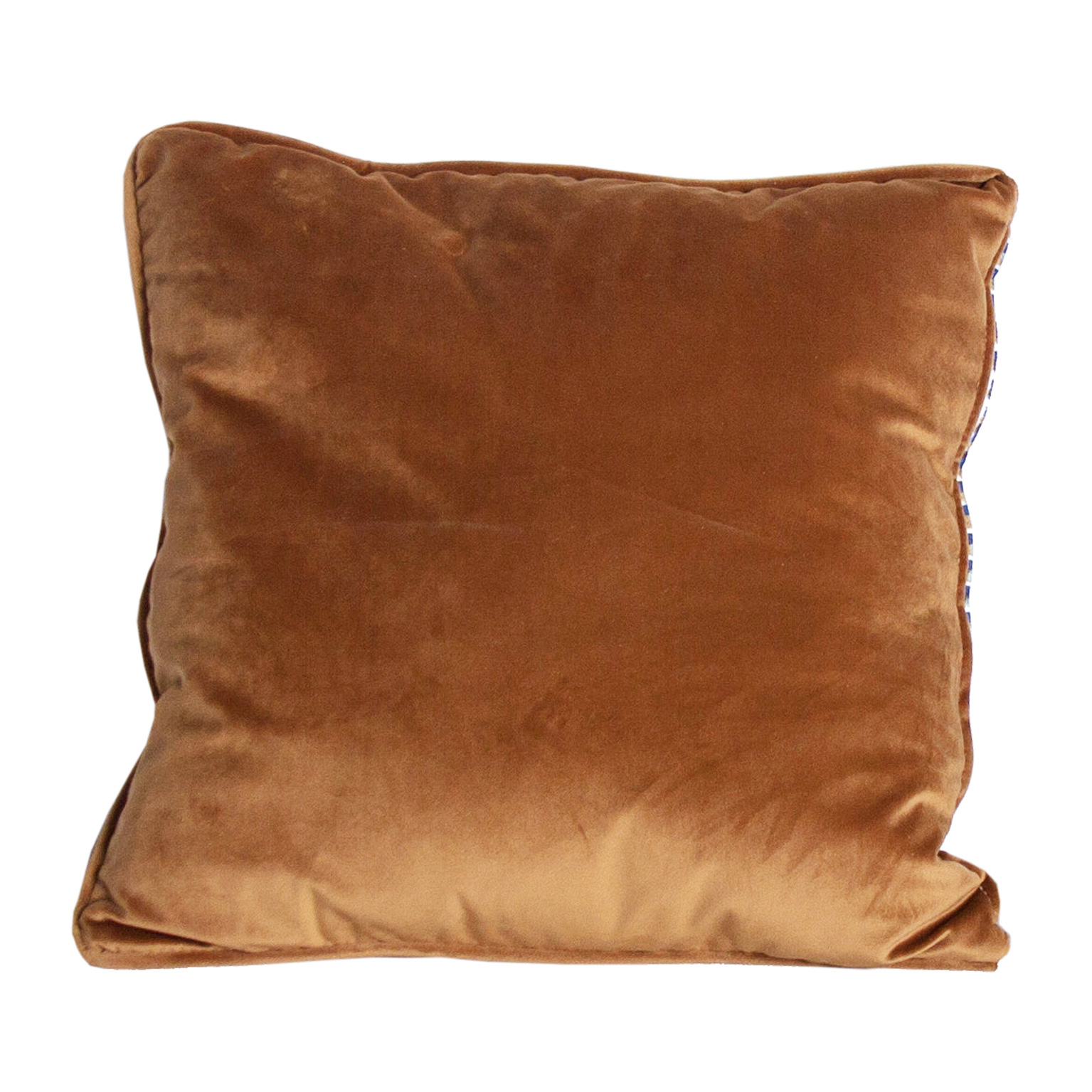 COJÍN BRILLON, EN COLOR OCRE ESTAMPADO, DE ESTILO ART DECO. FABRICADO EN POLIÉSTER, COMBINADO CON ESPUMA. PRODUCTO DESENFUNDABLE.