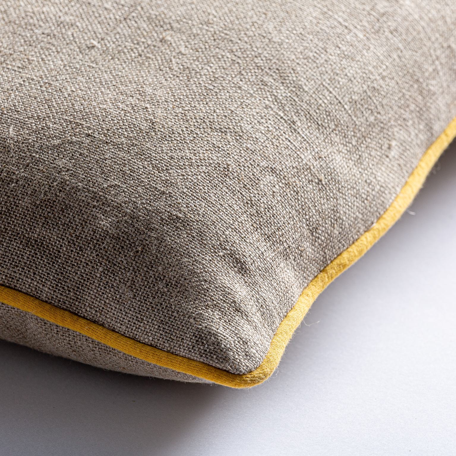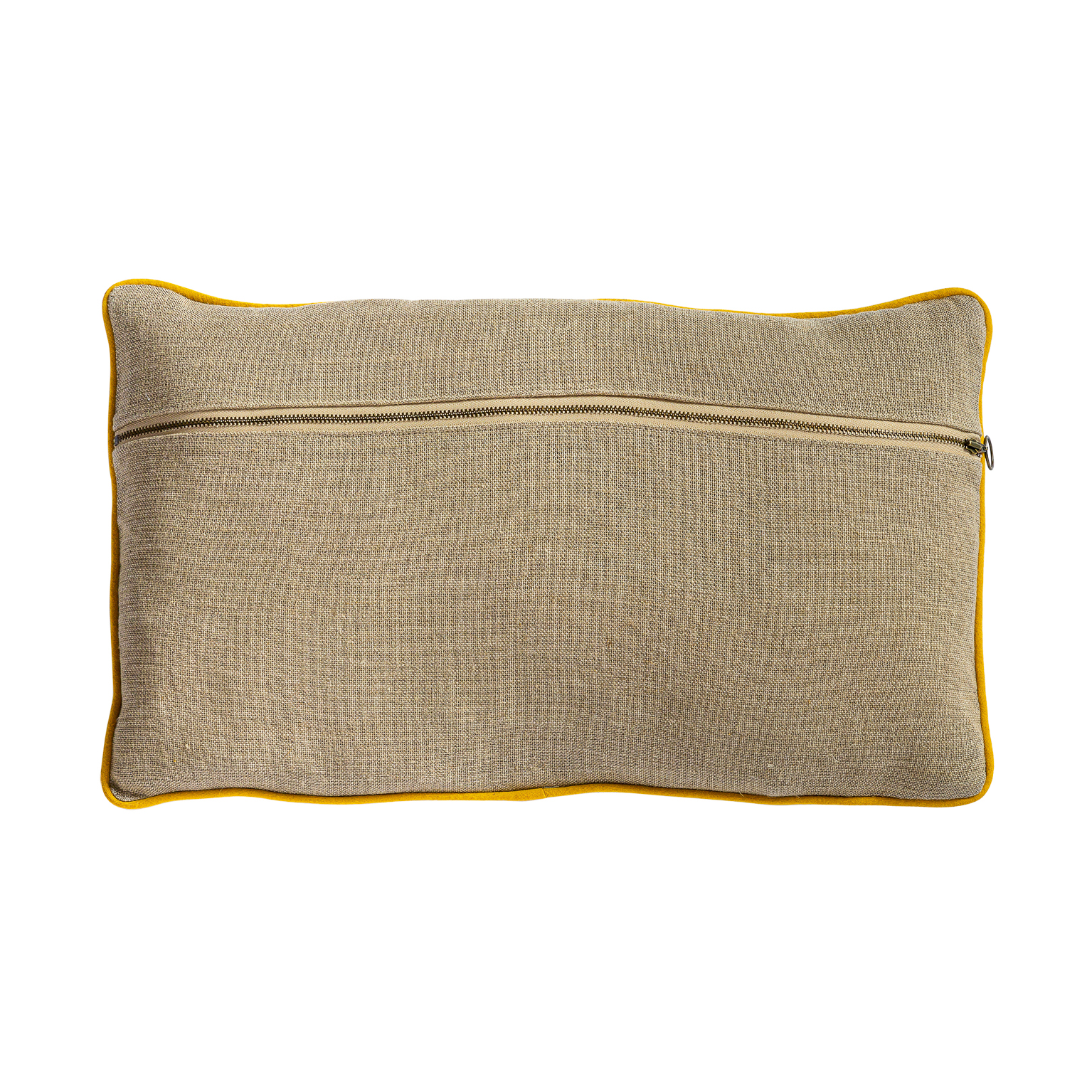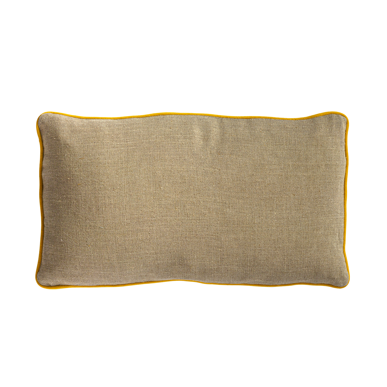 COJÍN RECTANGULAR NHILA, EN COLOR BEIGE RIBETEADO, DE ESTILO SHABBY CHIC. FABRICADO EN LINO.