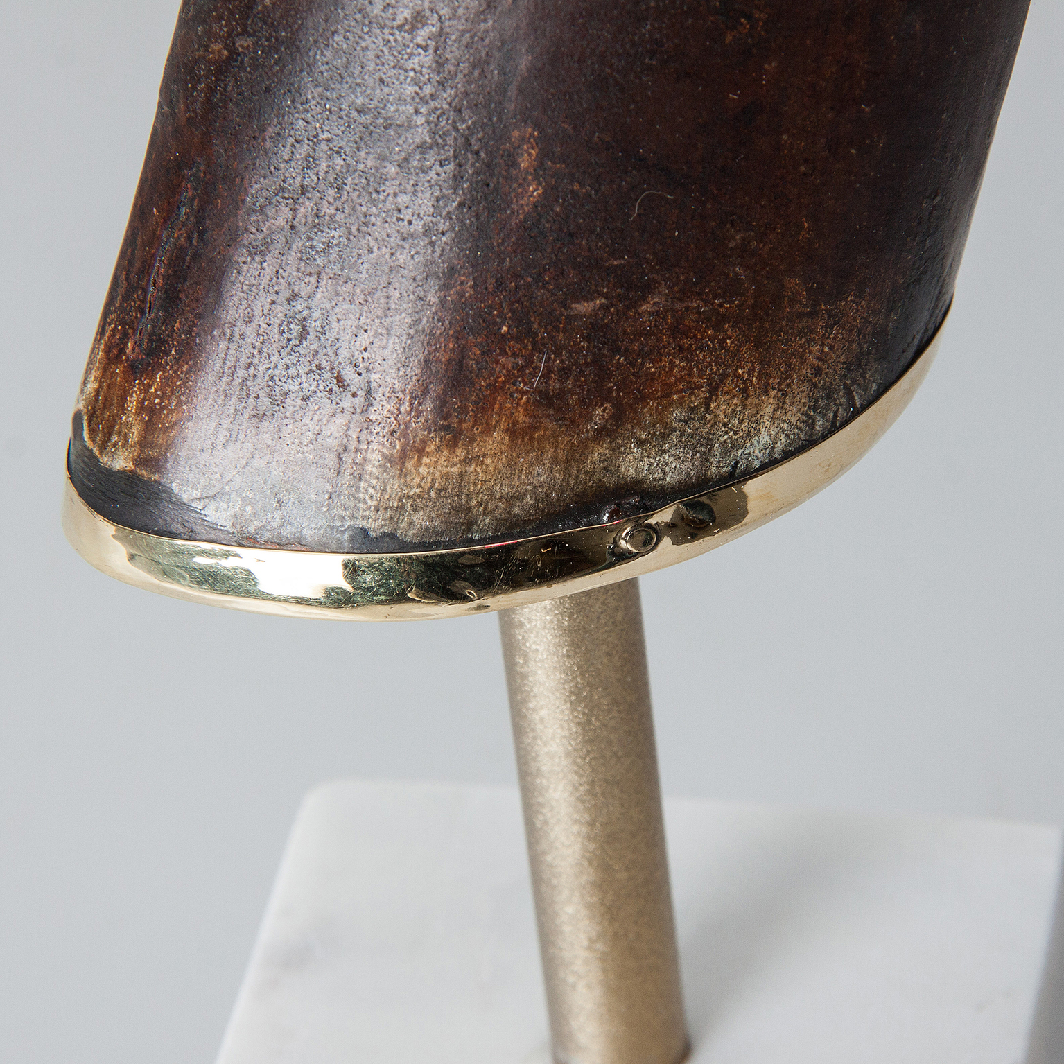 ESCULTURA, EN COLOR MARRÓN, DE ESTILO NÓRDICO. FABRICADO EN RESINA, COMBINADO CON MÁRMOL.