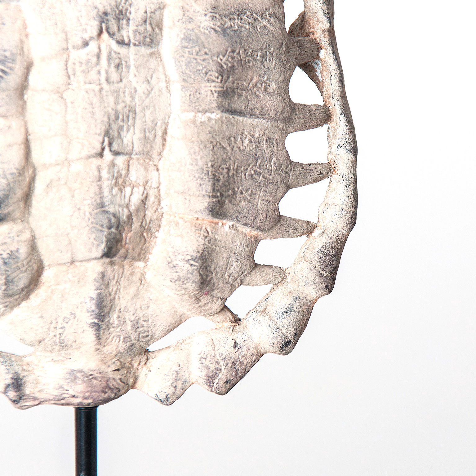 ESCULTURA CAPARAZÓN TORTUGA, EN COLOR GRIS, DE ESTILO NÓRDICO. FABRICADO EN RESINA, COMBINADO CON HIERRO.