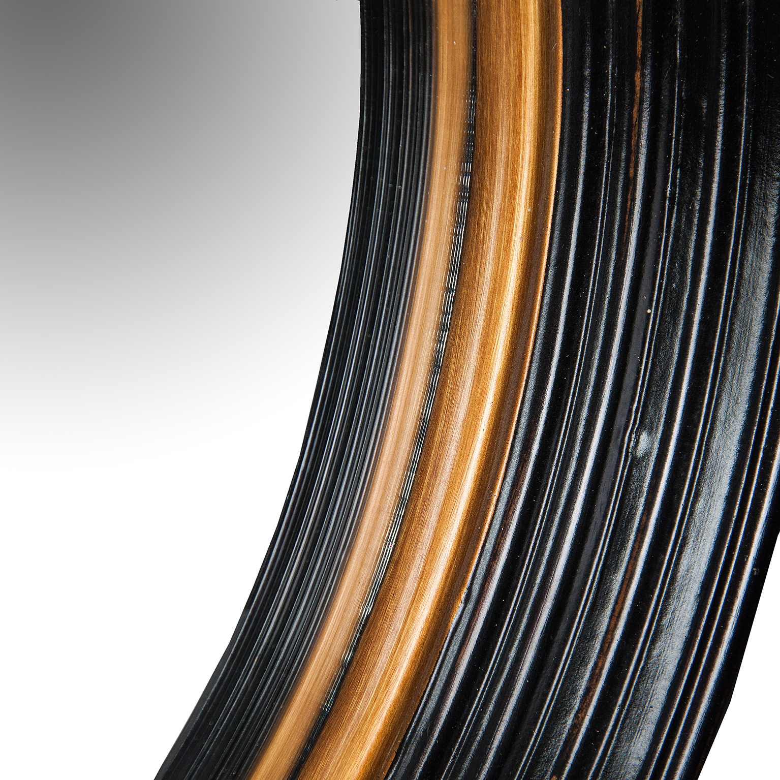 ESPEJO, EN COLOR NEGRO/ORO, DE ESTILO ART DECO. FABRICADO EN RESINA.