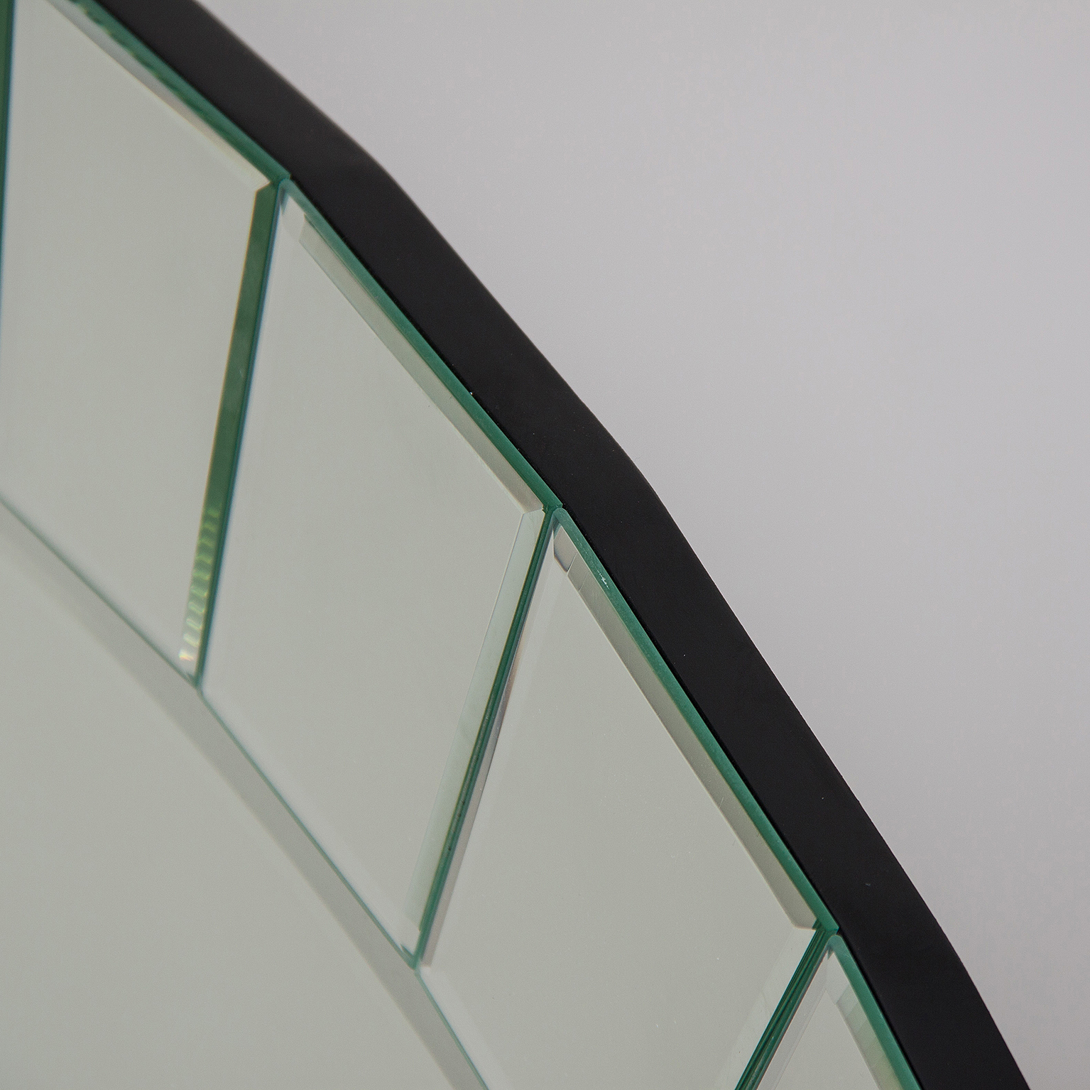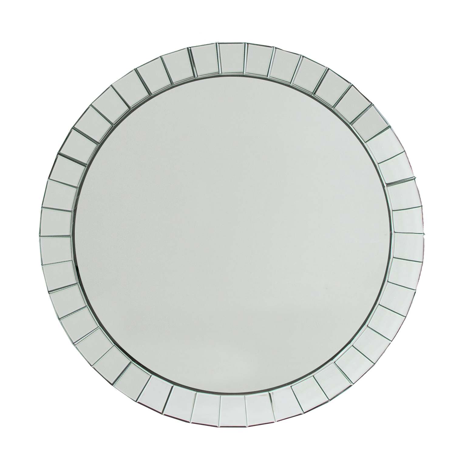 ESPEJO REDONDO, EN COLOR PLATA, DE ESTILO ART DECO. FABRICADO EN ESPEJO, COMBINADO CON DM.