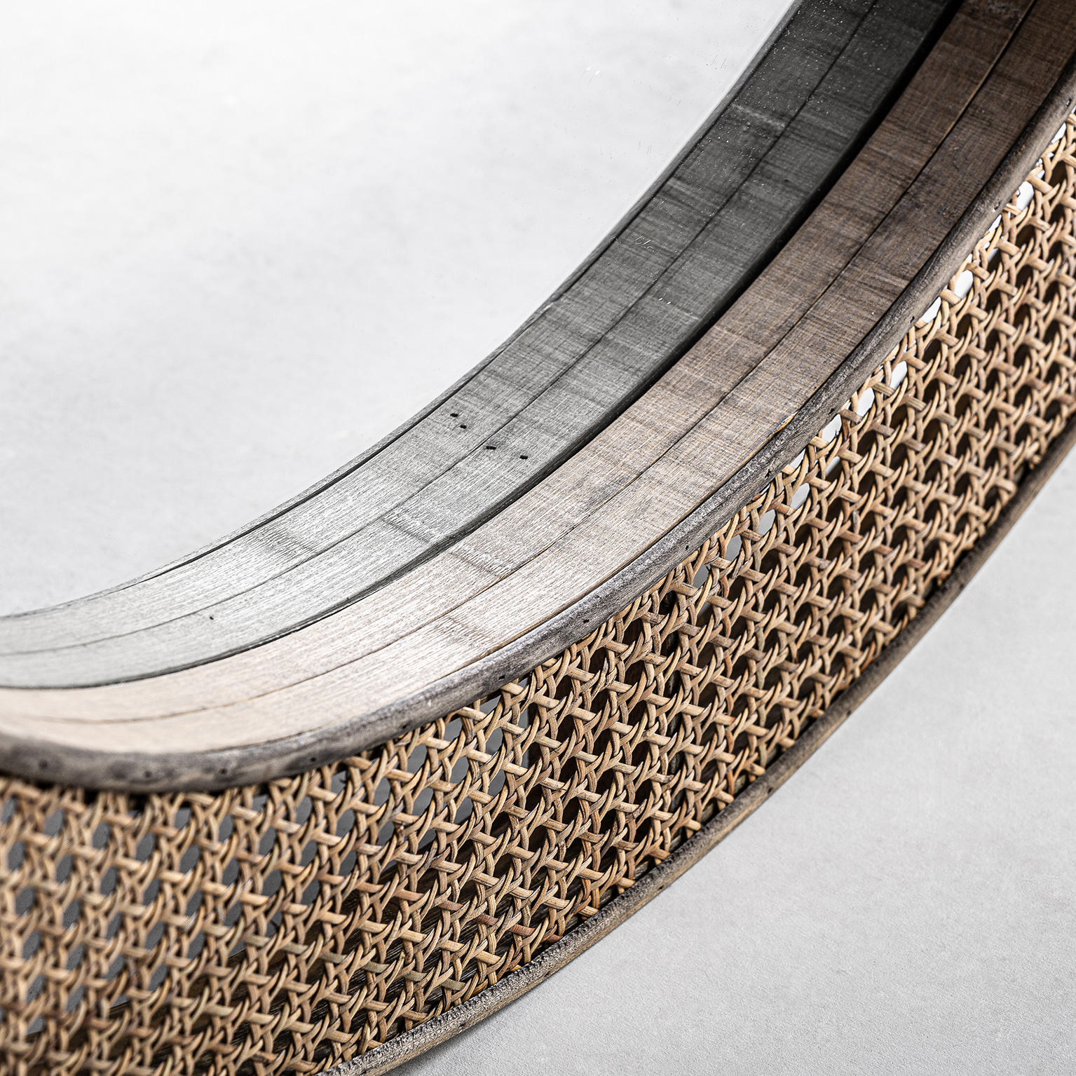 ESPEJO RILLAND, EN COLOR NATURAL, DE ESTILO CONTEMPORÁNEO. FABRICADO EN RATÁN, COMBINADO CON MADERA ABEDUL Y ESPEJO.
