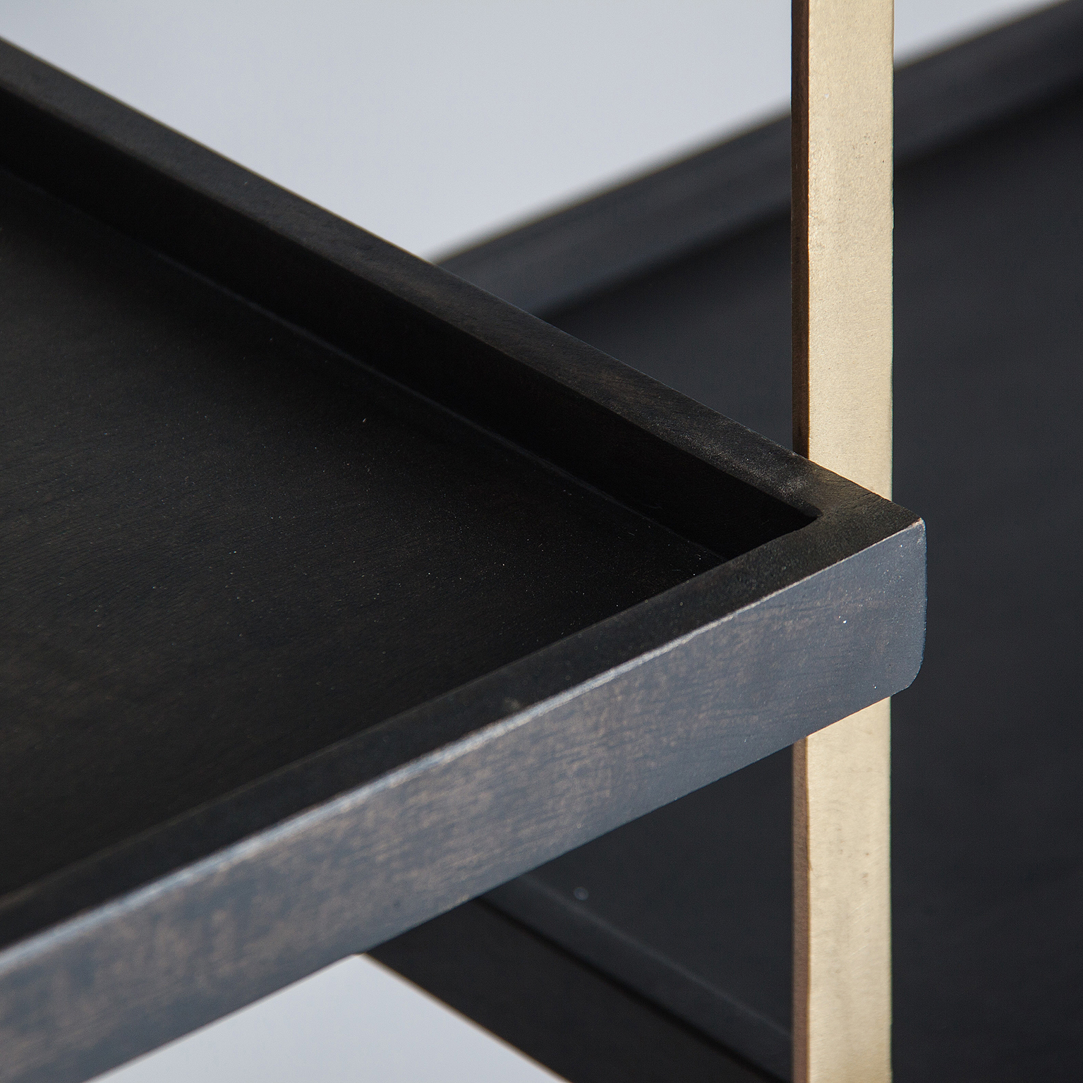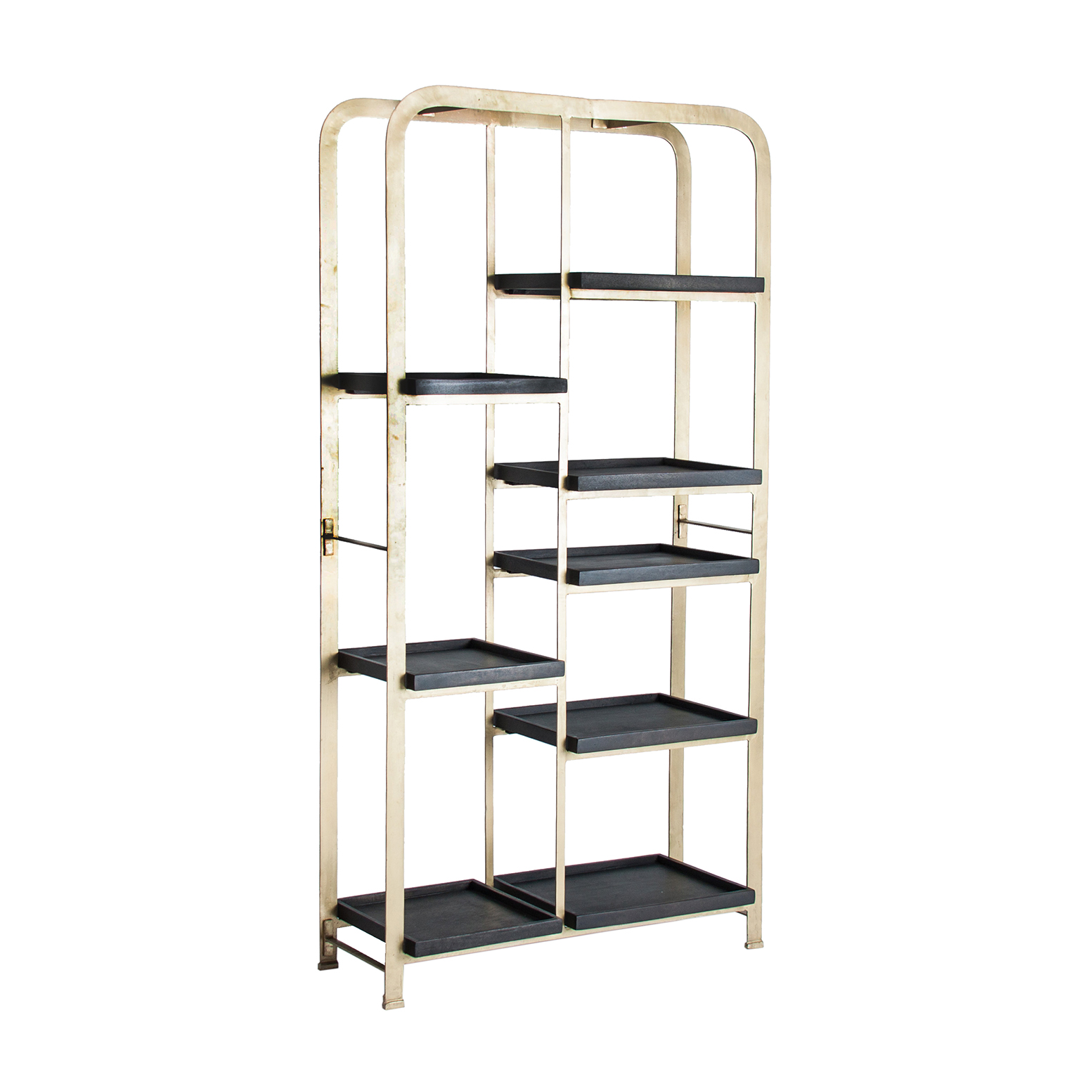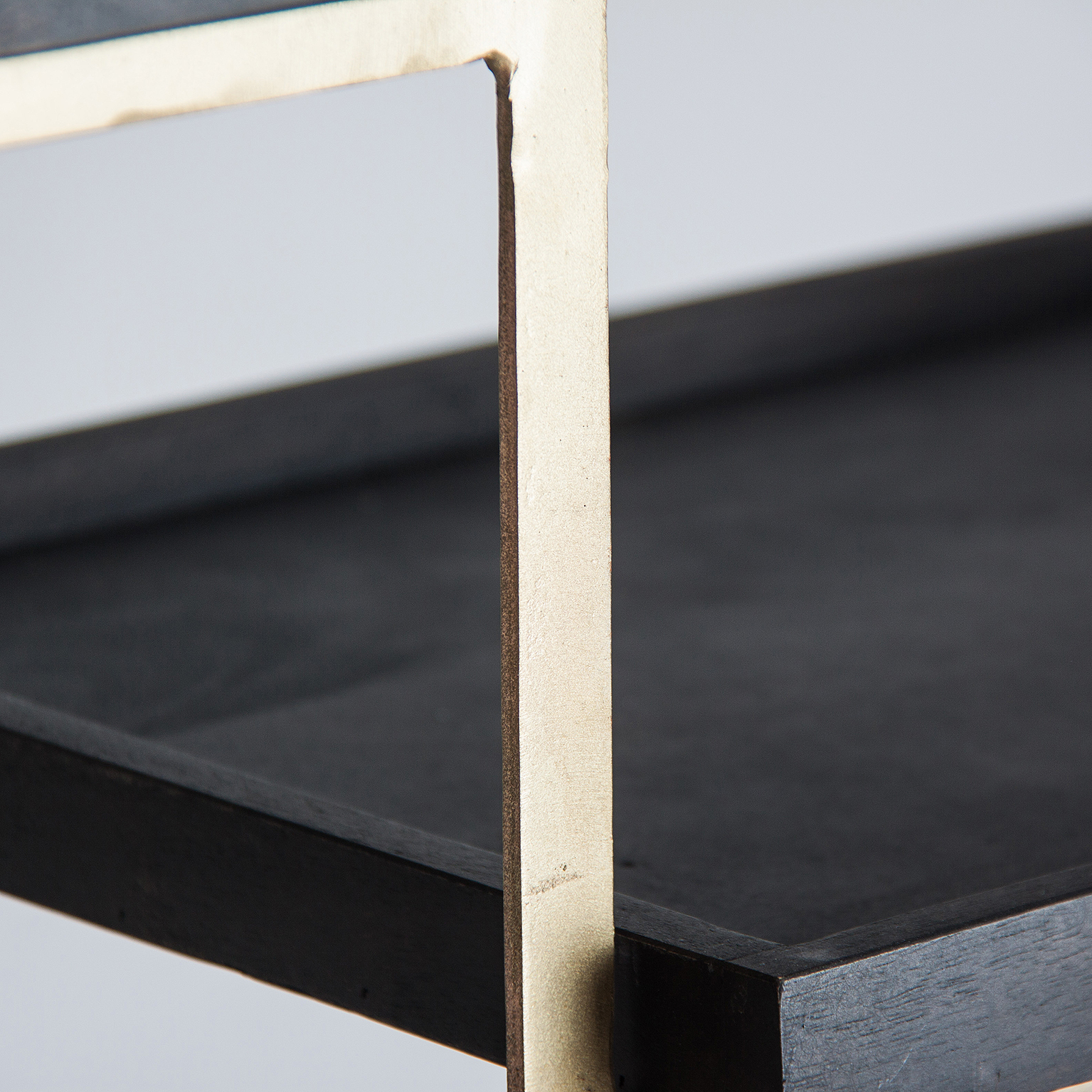 ESTANTERIA HUEZ, EN COLOR NEGRO/ORO, DE ESTILO ART DECO. FABRICADO EN HIERRO, COMBINADO CON MADERA DE OLMO. PRODUCTO DESMONTABLE.