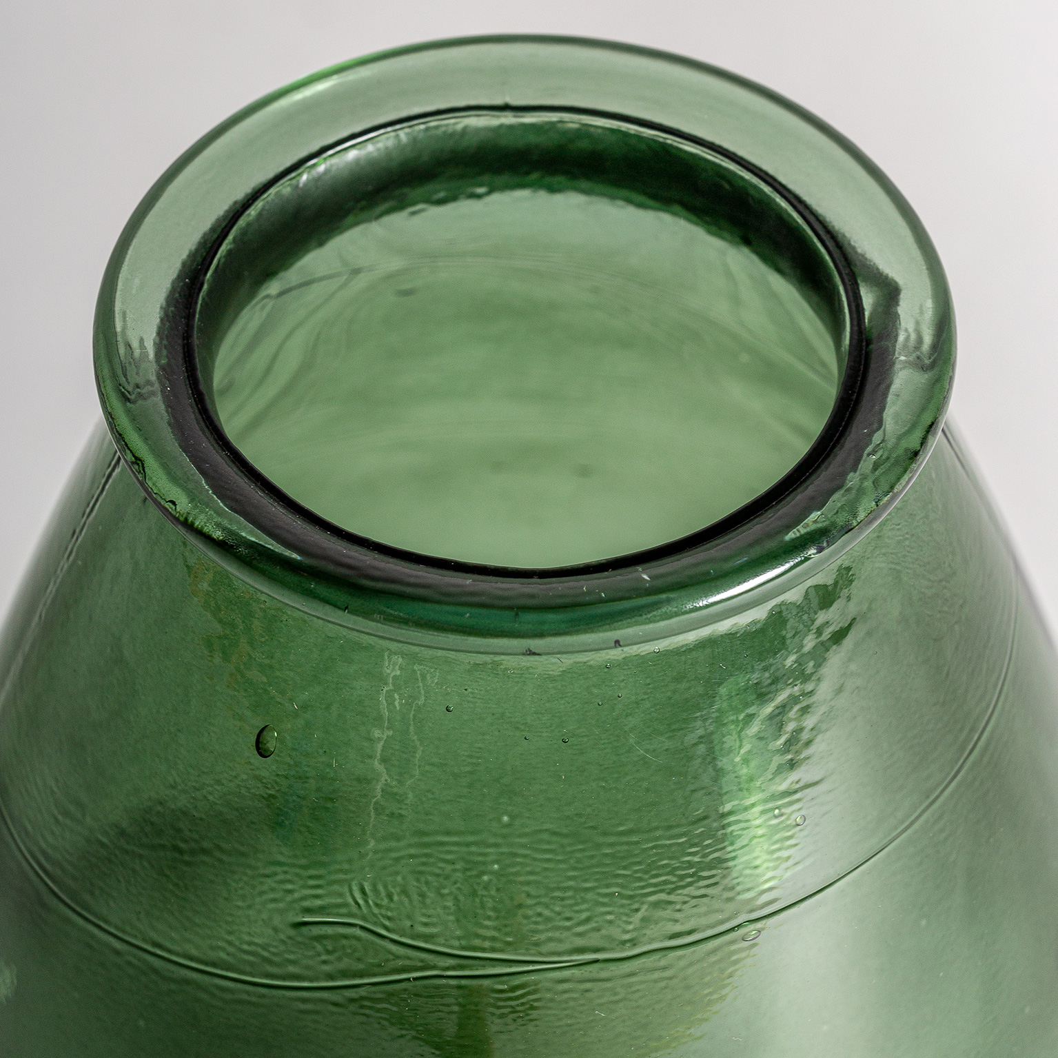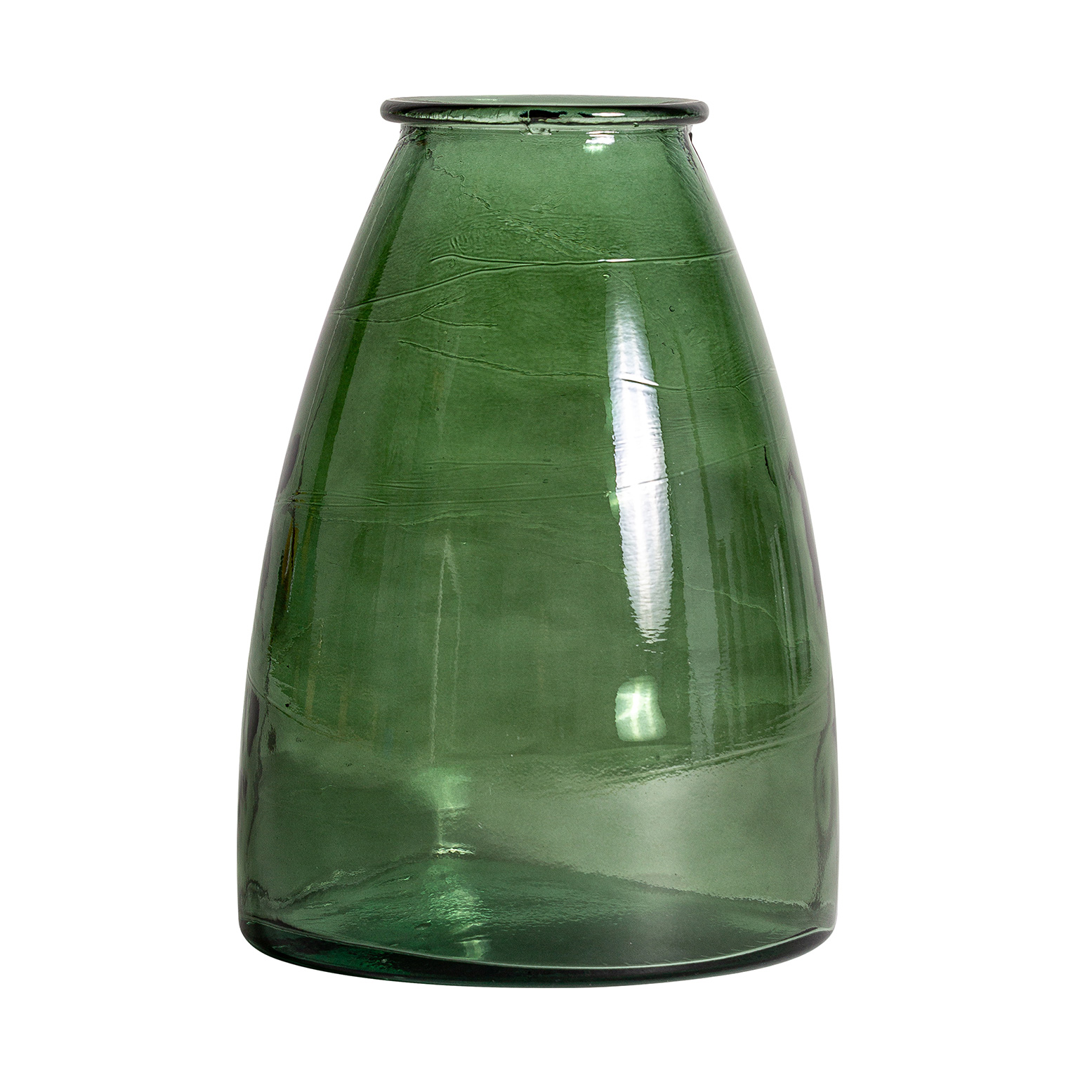 JARRÓN ASTOR, EN COLOR VERDE BRILLO, DE ESTILO ART DECO. FABRICADO EN CRISTAL.