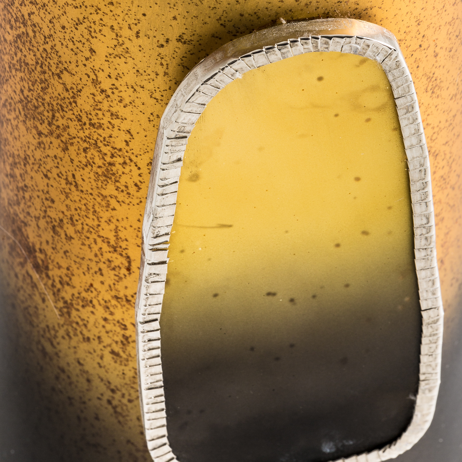 JARRÓN CANDY, EN COLOR CHAMPAGNE ENVEJECIDO, DE ESTILO CLÁSICO. FABRICADO EN VIDRIO, COMBINADO CON HIERRO.