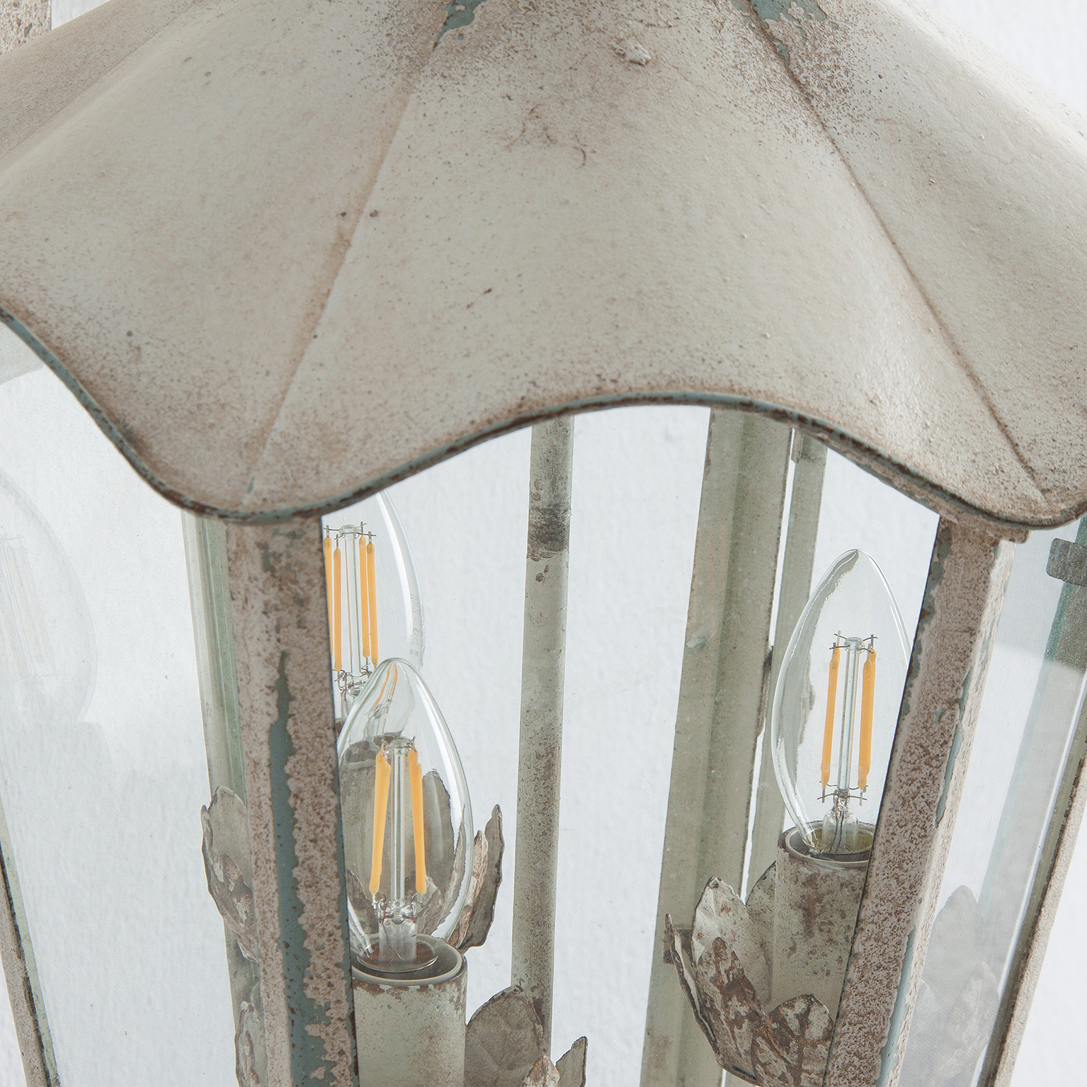 LÁMPARA DE PARED, EN COLOR BLANCO ROTO ENVEJECIDO, DE ESTILO PROVENZAL. FABRICADO EN HIERRO. PRODUCTO DESMONTABLE.