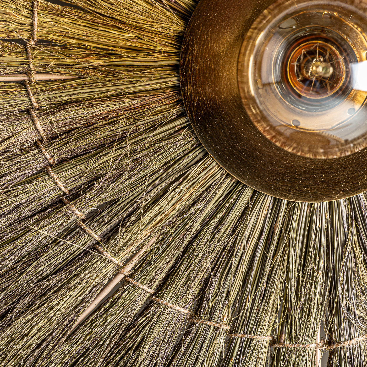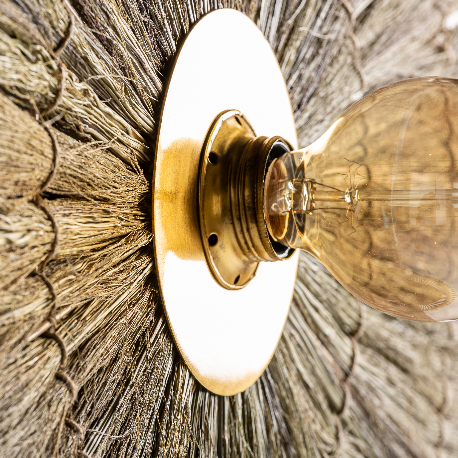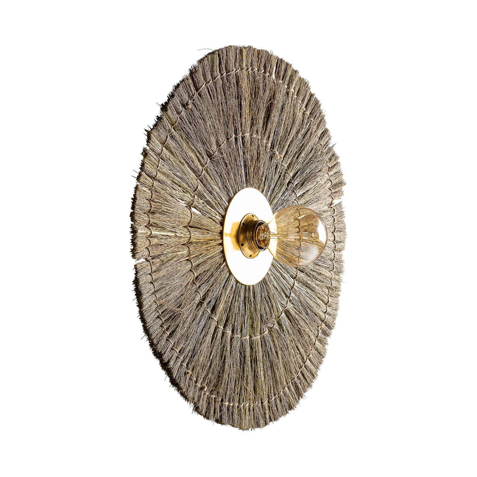 LÁMPARA DE PARED, EN COLOR NATURAL, DE ESTILO ÉTNICO. FABRICADO EN HIERRO, COMBINADO CON FIBRA NATURAL.