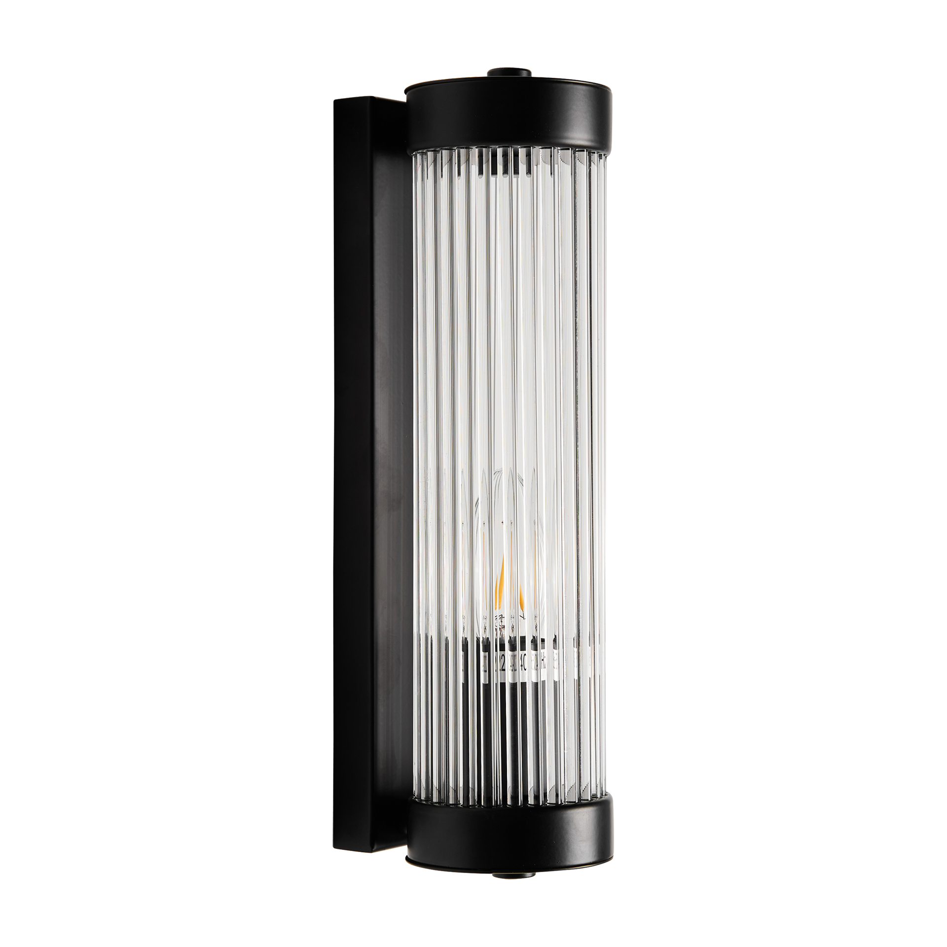 LÁMPARA DE PARED, EN COLOR NEGRO, DE ESTILO ART DECO. FABRICADO EN CRISTAL, COMBINADO CON HIERRO.