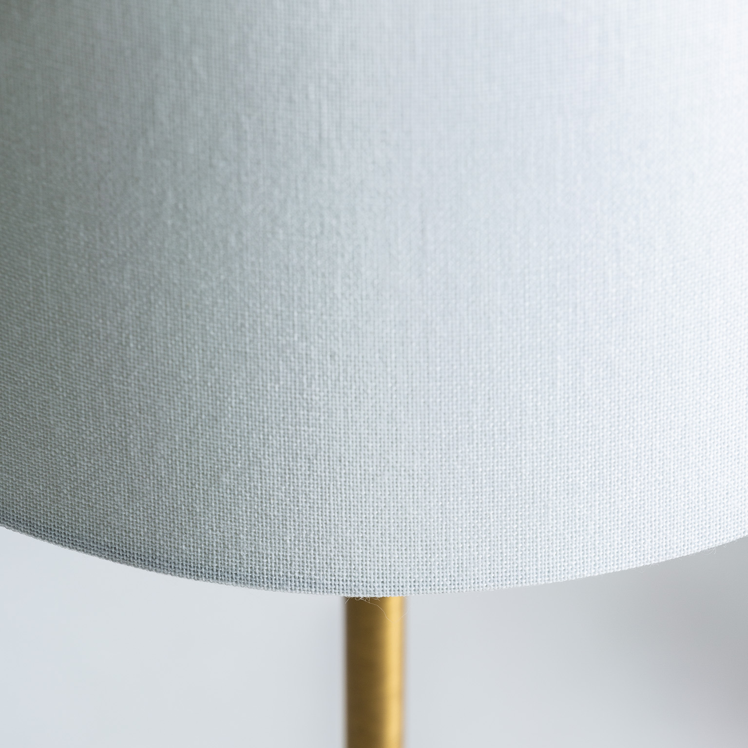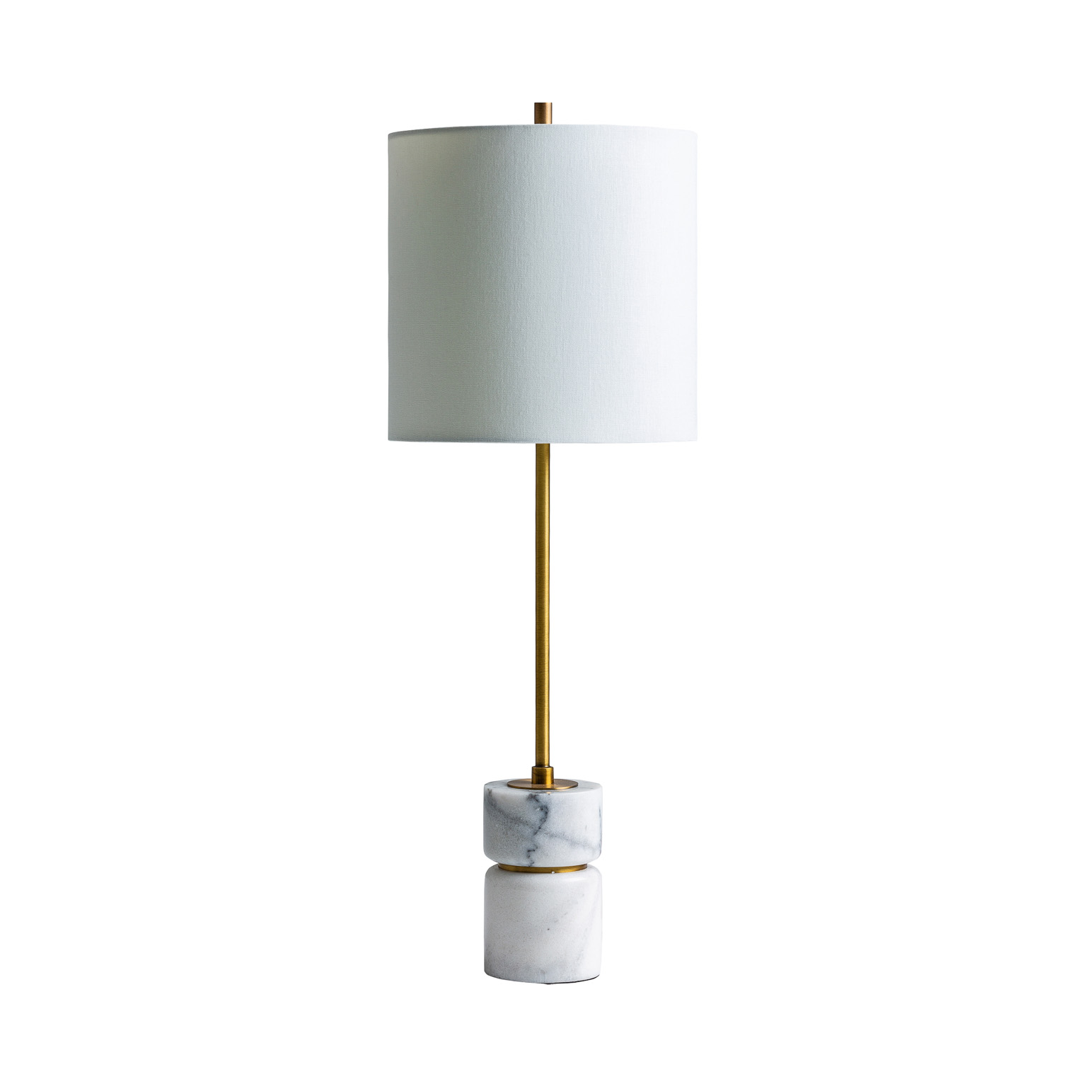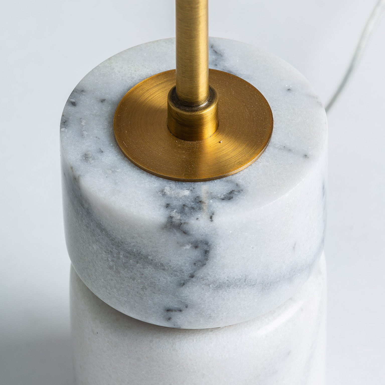 LÁMPARA DE SOBREMESA, EN COLOR BLANCO/ORO, DE ESTILO ART DECO. FABRICADO EN HIERRO, COMBINADO CON MÁRMOL Y LINO.