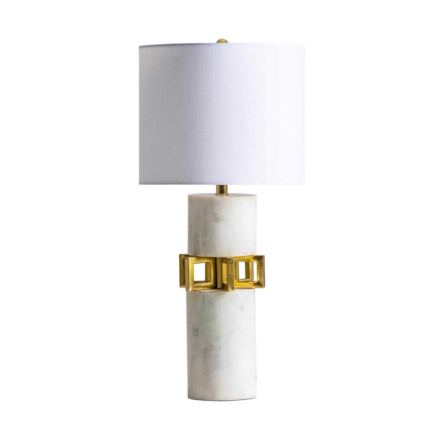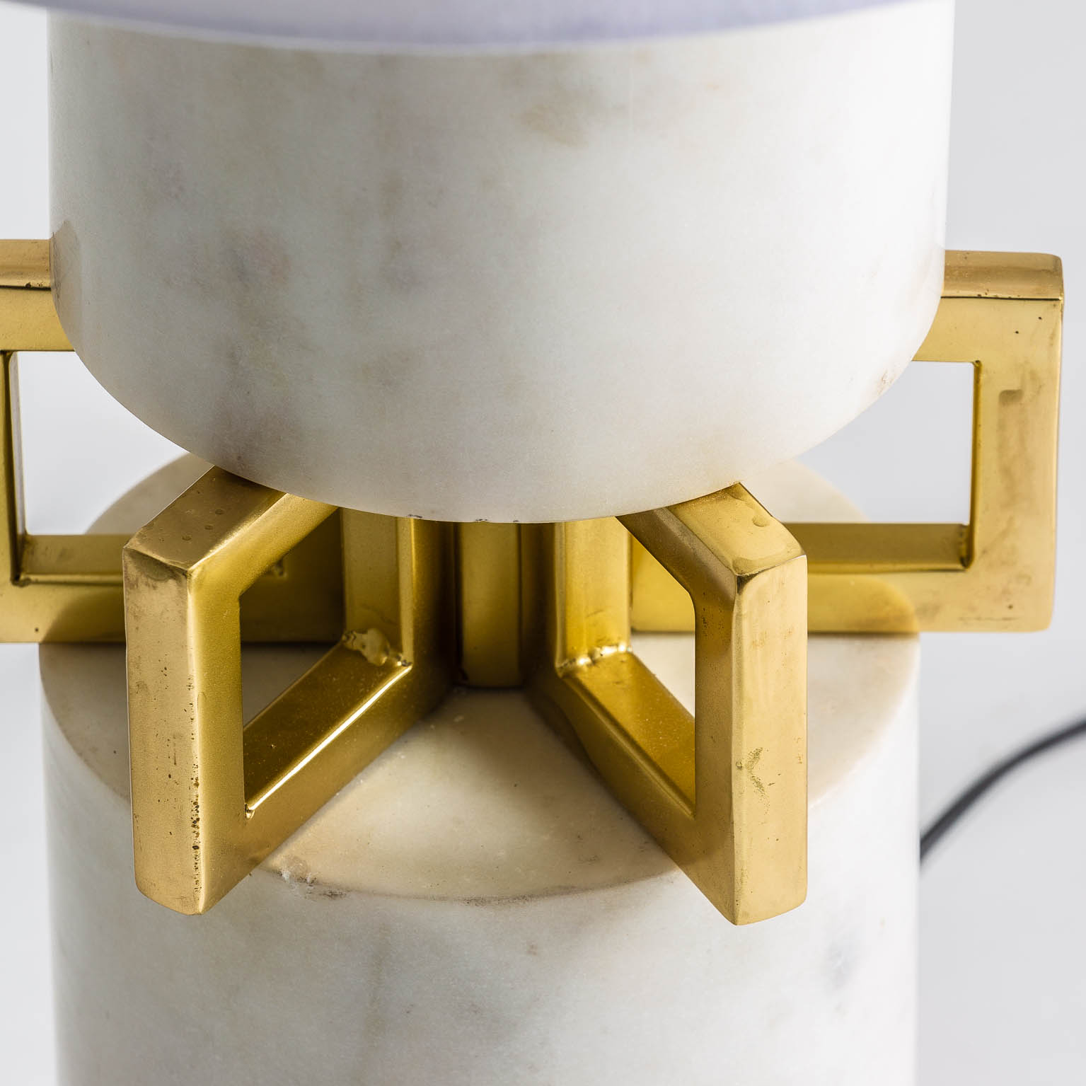 LÁMPARA DE SOBREMESA, EN COLOR BLANCO/ORO, DE ESTILO ART DECO. FABRICADO EN MÁRMOL, COMBINADO CON ALGODÓN.