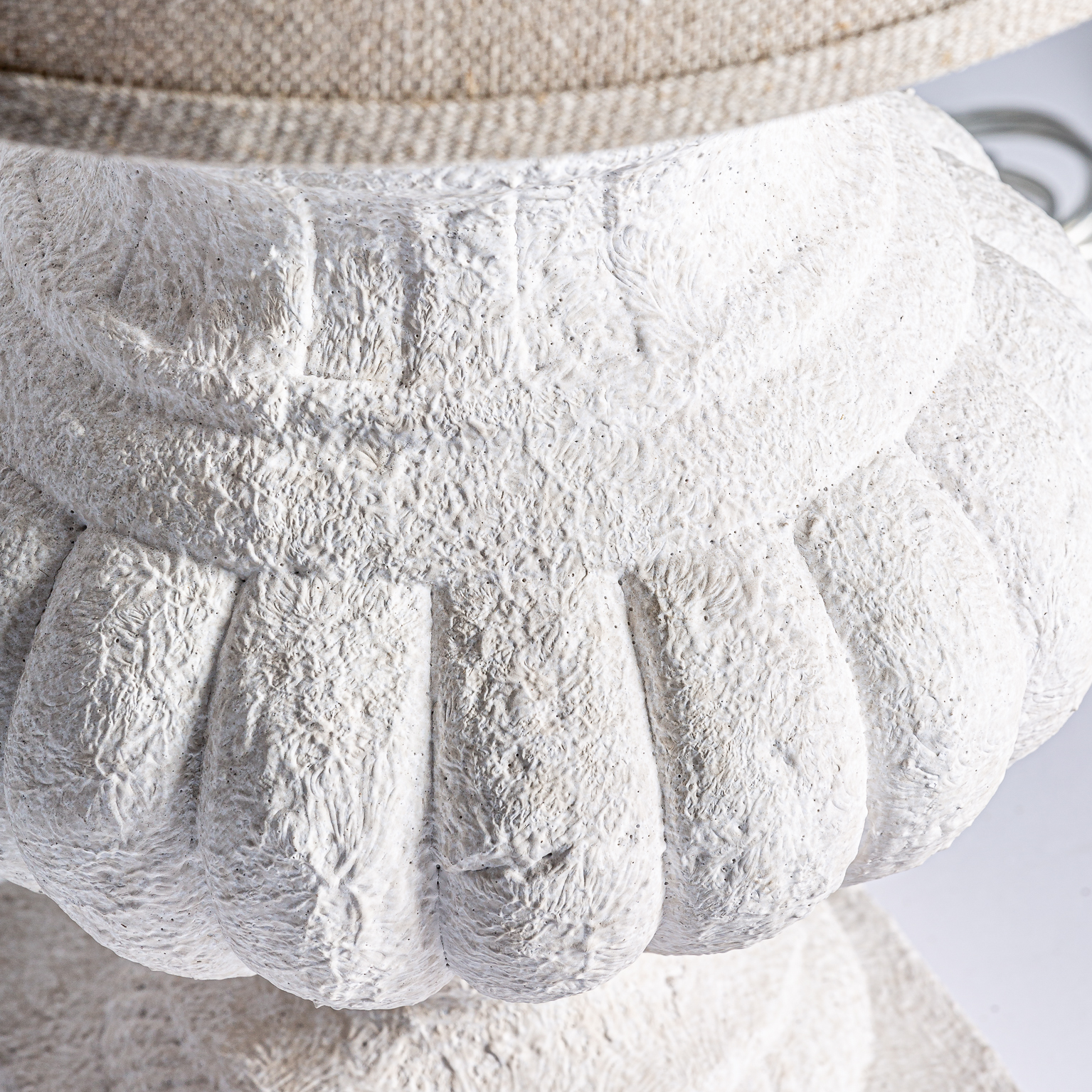 LÁMPARA DE SOBREMESA, EN COLOR BLANCO/BEIGE, DE ESTILO PROVENZAL. FABRICADO EN RESINA, COMBINADO CON HIERRO Y LINO. PRODUCTO DESMONTABLE.