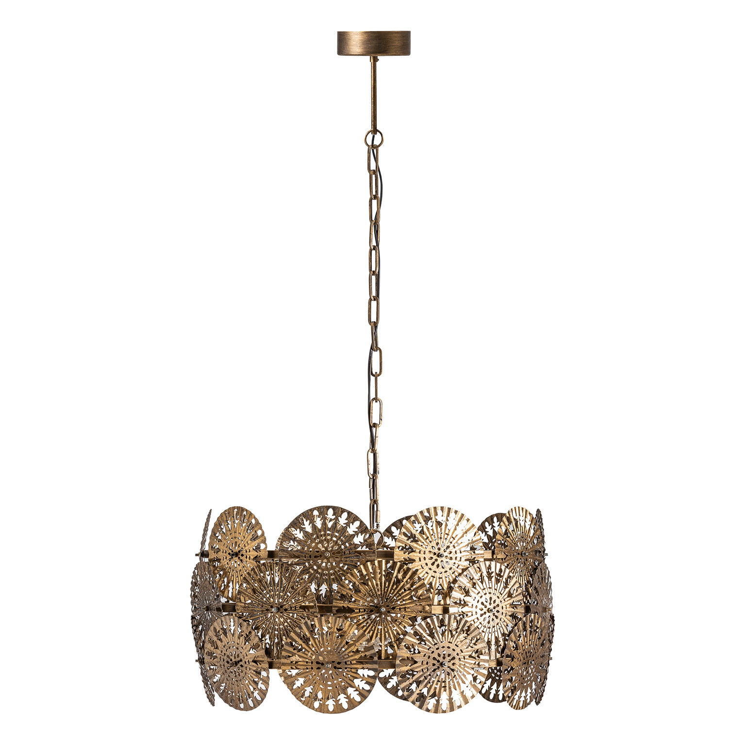 LÁMPARA DE TECHO, EN COLOR ORO VIEJO, DE ESTILO ART DECO. FABRICADO EN HIERRO, COMBINADO CON ESPEJO. PRODUCTO DESMONTABLE.