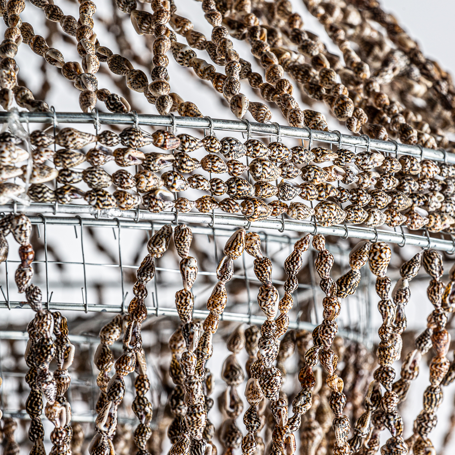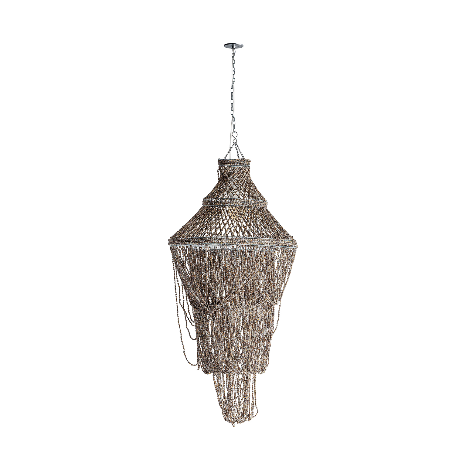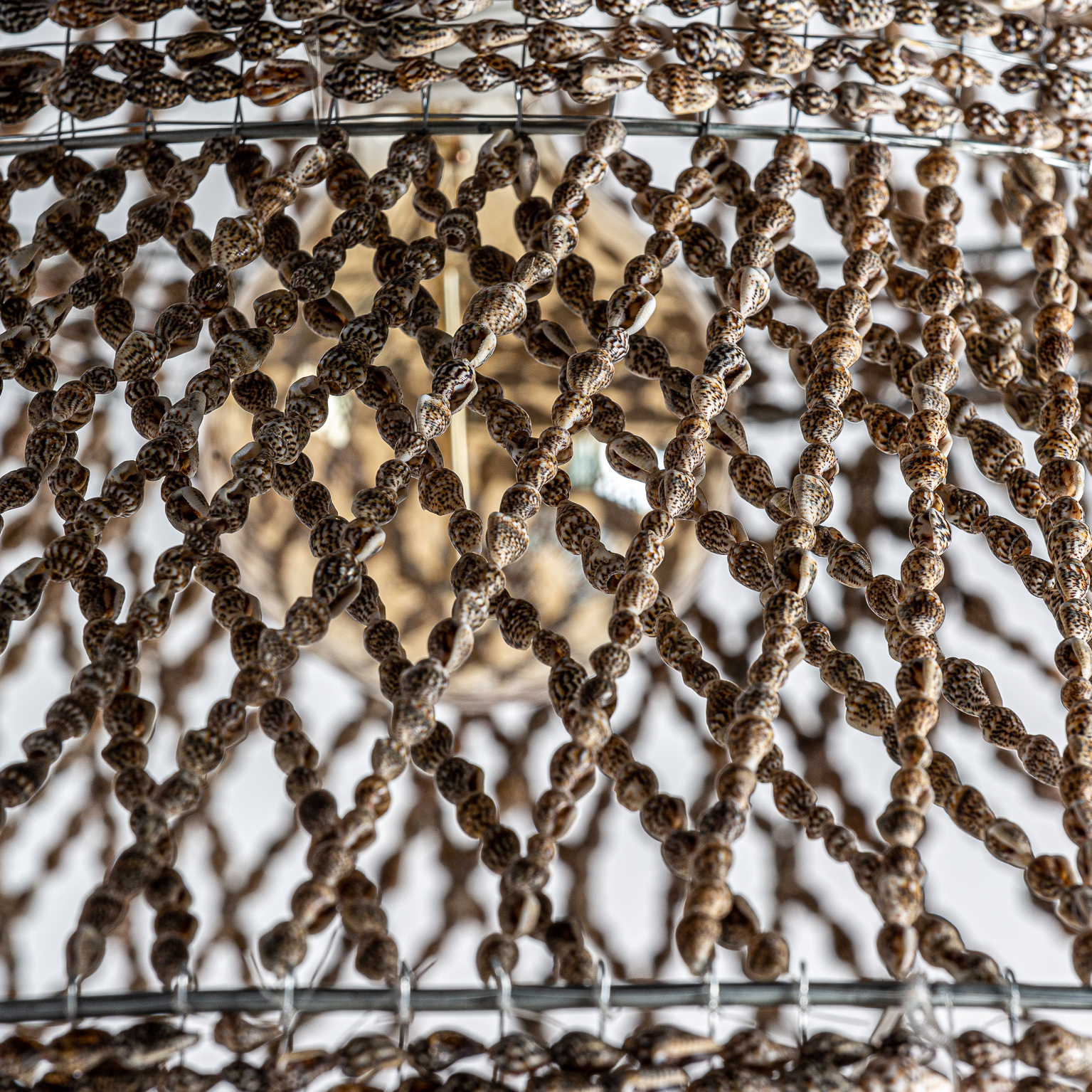 LÁMPARA DE TECHO, EN COLOR MARRÓN/BEIGE ARTESANAL, DE ESTILO CONTEMPORÁNEO. FABRICADO EN CONCHA.