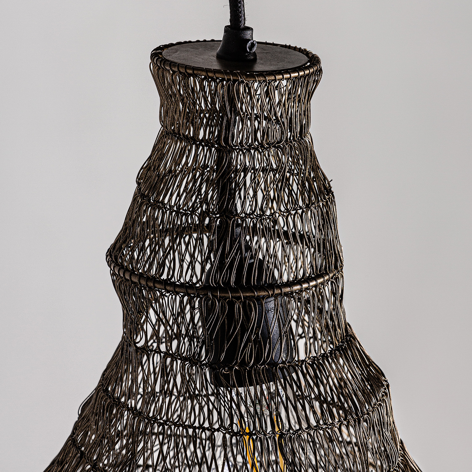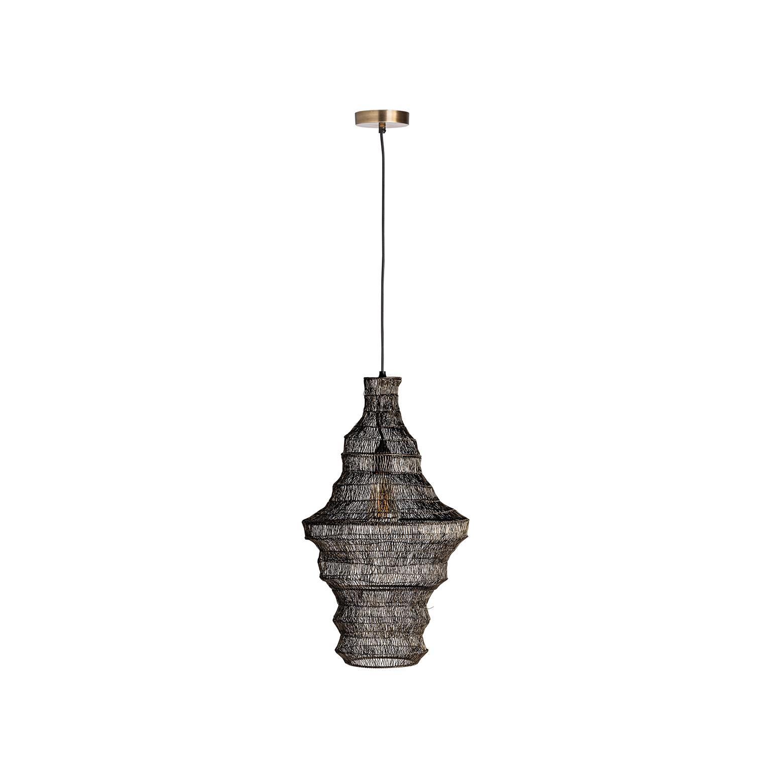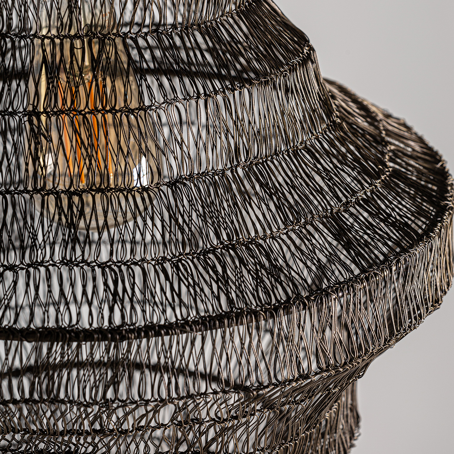 LÁMPARA DE TECHO, EN COLOR NEGRO ARTESANAL, DE ESTILO CONTEMPORÁNEO. FABRICADO EN HIERRO. TEJIDO A MANO.