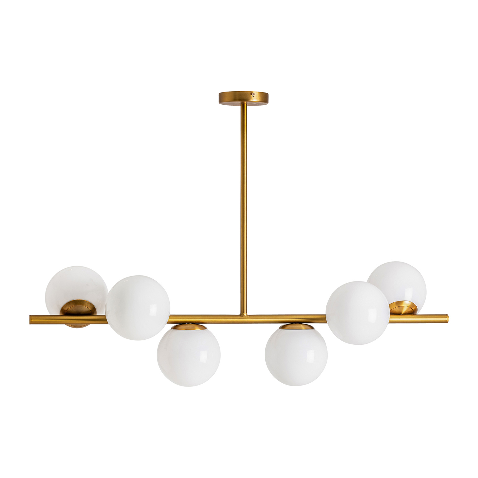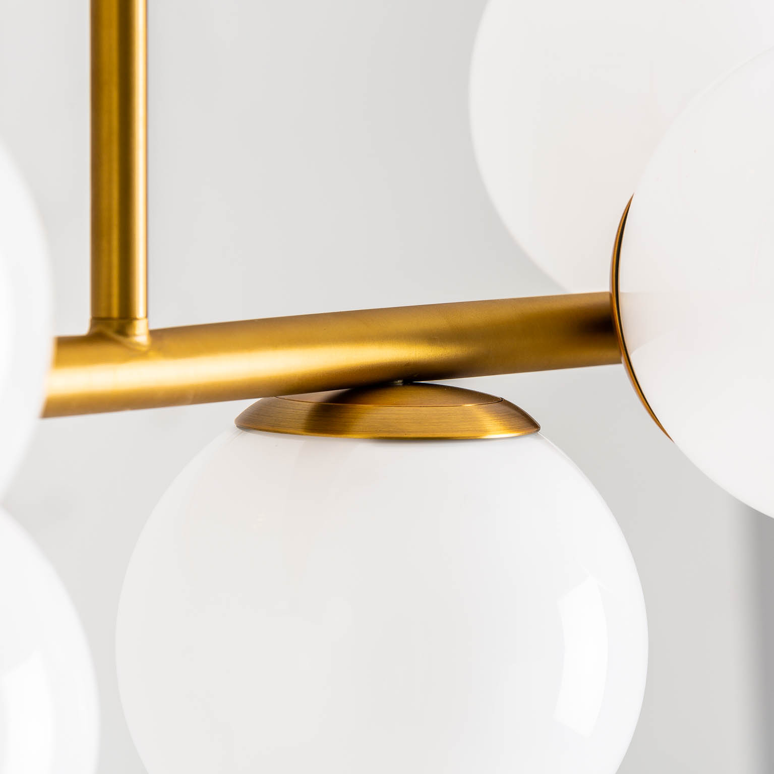 LÁMPARA DE TECHO BOLA, EN COLOR BLANCO/ORO, DE ESTILO ART DECO. FABRICADO EN LATÓN, COMBINADO CON CRISTAL.