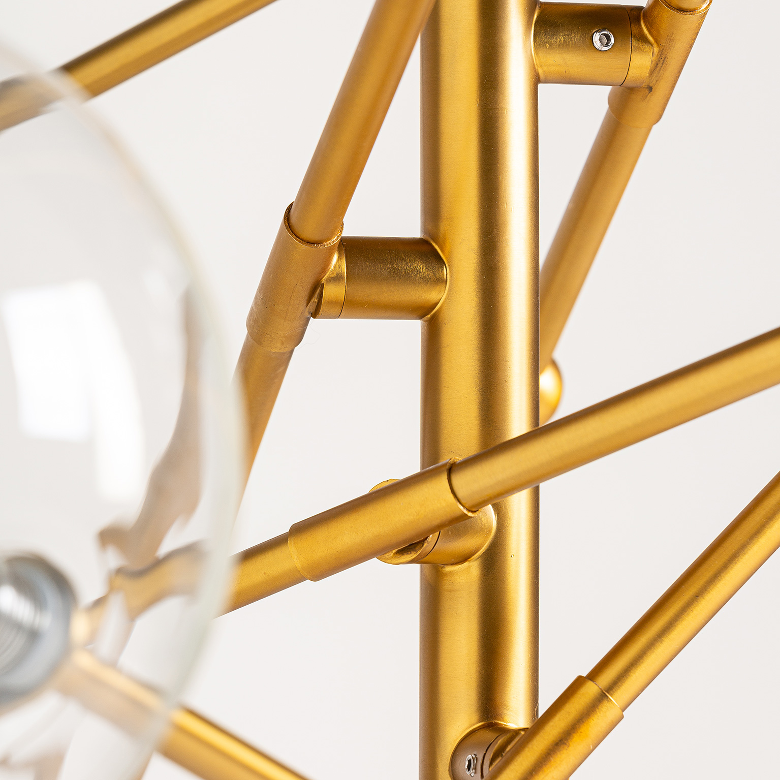 LÁMPARA DE TECHO BOLA, EN COLOR ORO, DE ESTILO ART DECO. FABRICADO EN HIERRO, COMBINADO CON VIDRIO. PRODUCTO DESMONTABLE.