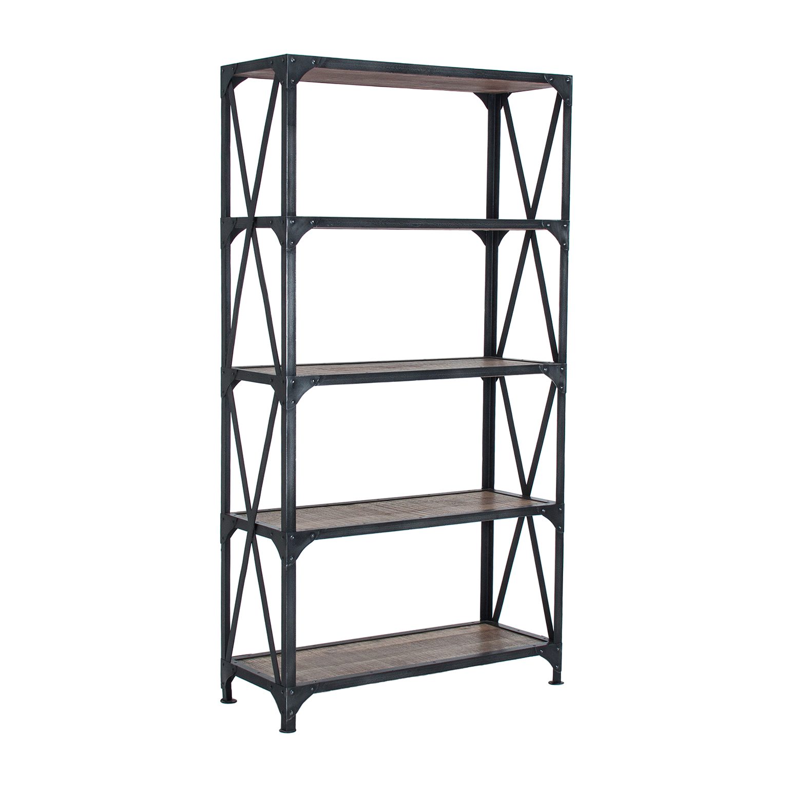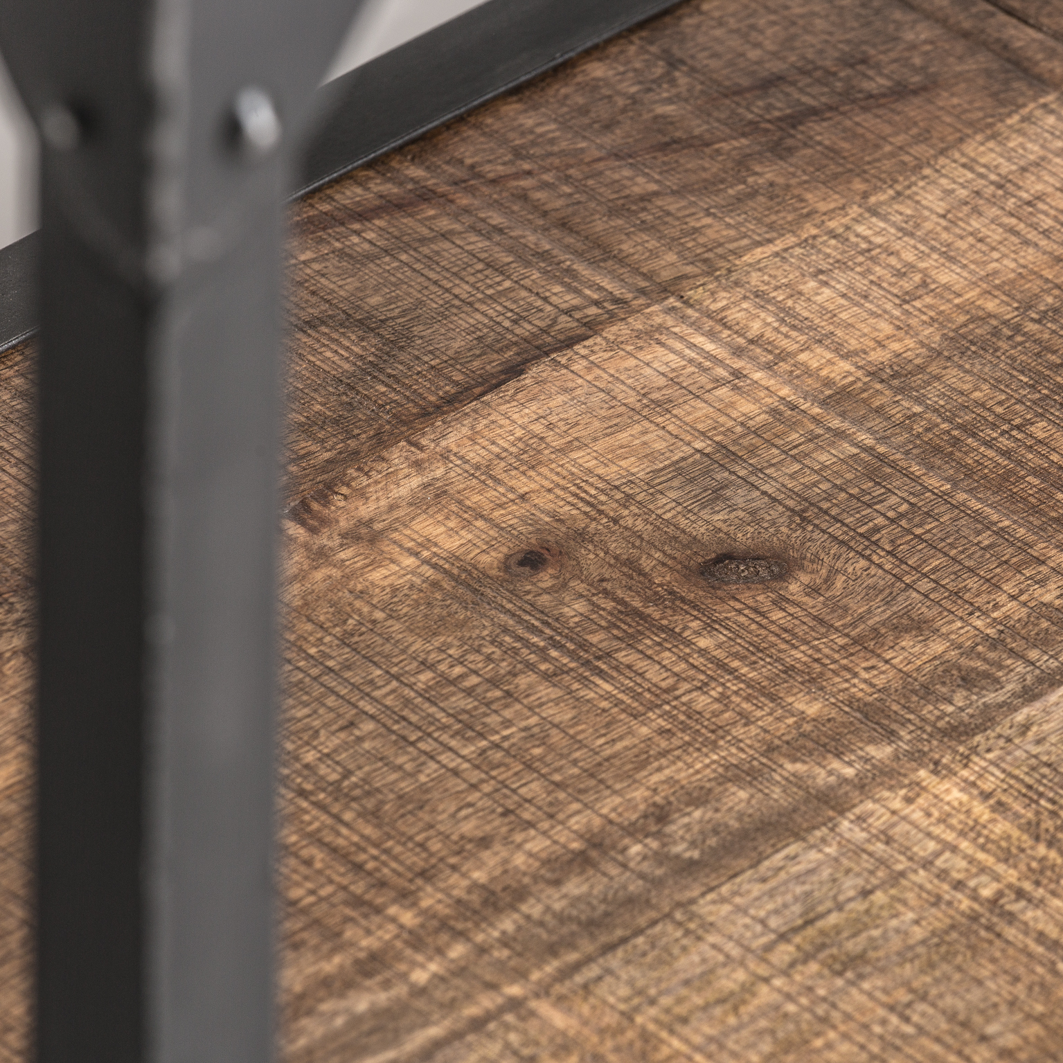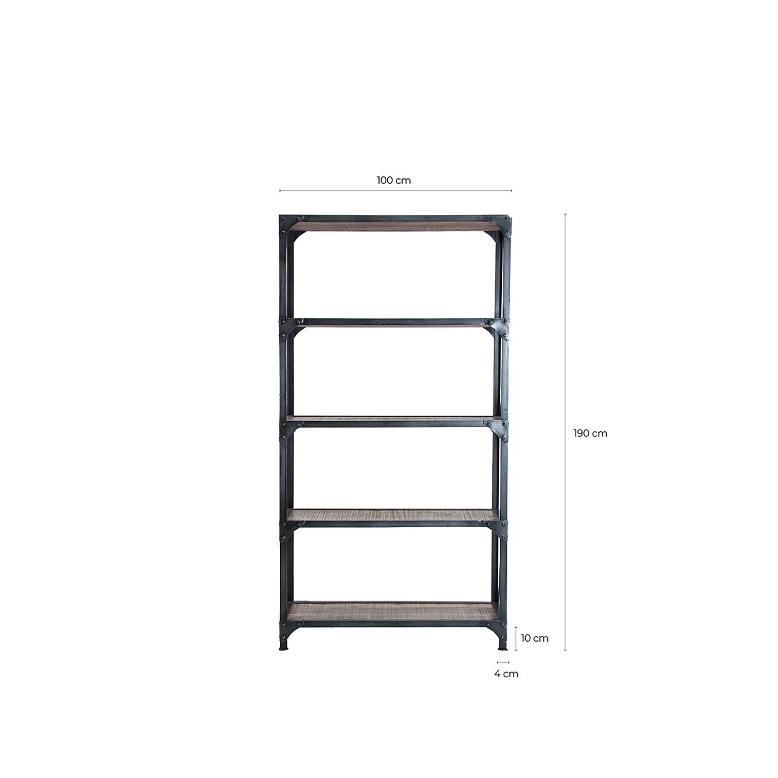 LIBRERÍA TOLGA, EN COLOR NEGRO/NATURAL ENVEJECIDO, DE ESTILO INDUSTRIAL. FABRICADO EN HIERRO, COMBINADO CON MADERA DE MANGO.
