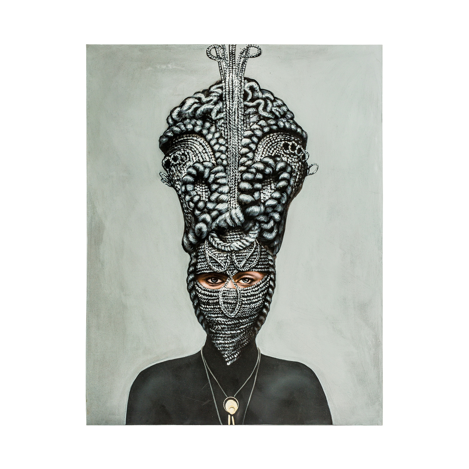 LIENZO ADIB, EN COLOR BLANCO/NEGRO/MARFIL ARTESANAL, DE ESTILO ORIENTAL. FABRICADO EN LIENZO, COMBINADO CON MADERA DE PINO.