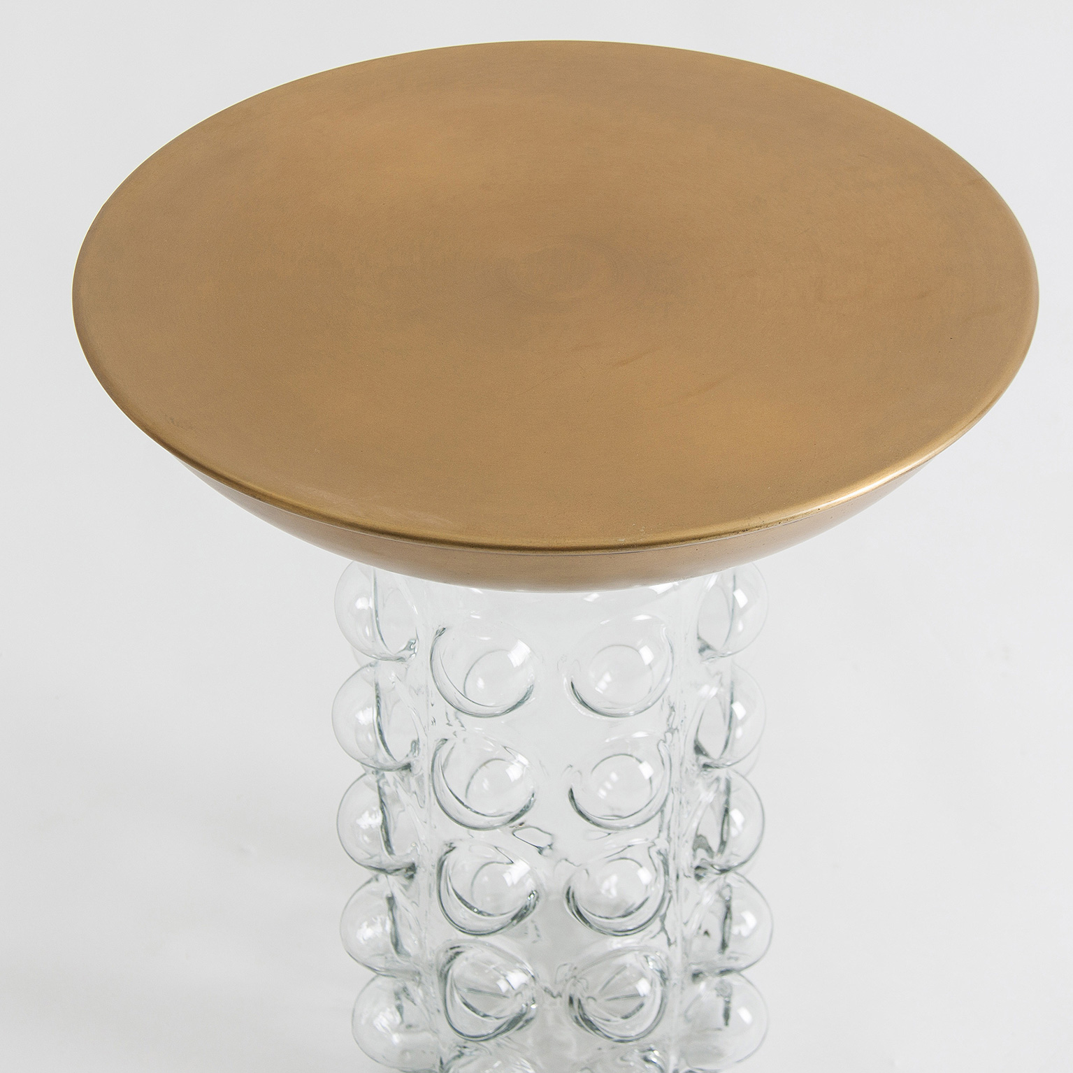 MESA AUXILIAR BLOW, EN COLOR ORO, DE ESTILO CLÁSICO. FABRICADO EN LATÓN, COMBINADO CON VIDRIO. PRODUCTO DESMONTABLE.