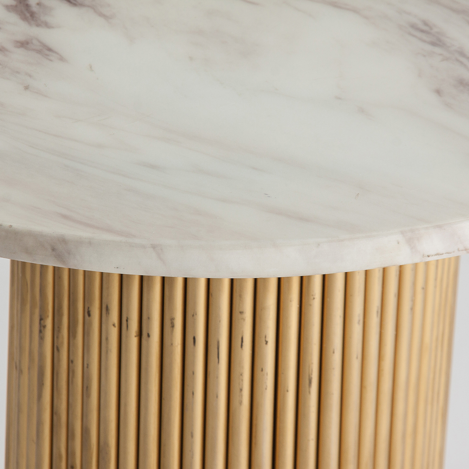 MESA AUXILIAR COEN, EN COLOR BLANCO/ORO, DE ESTILO CONTEMPORÁNEO. FABRICADO EN ACERO, COMBINADO CON PIEDRA. ACABADO TIPO MÁRMOL.