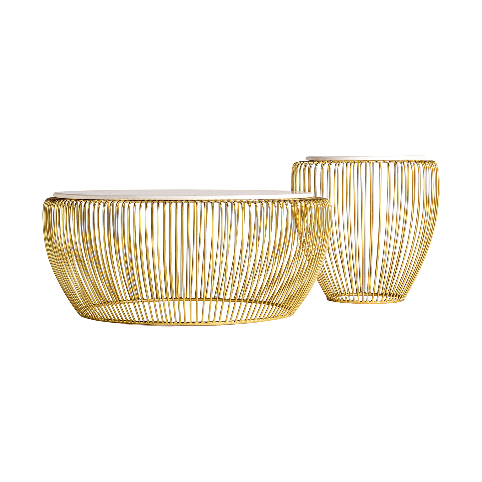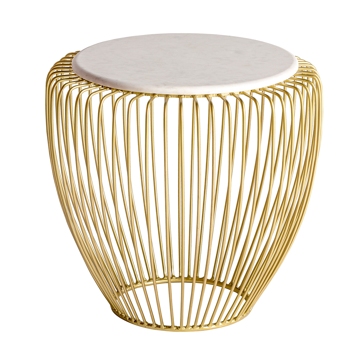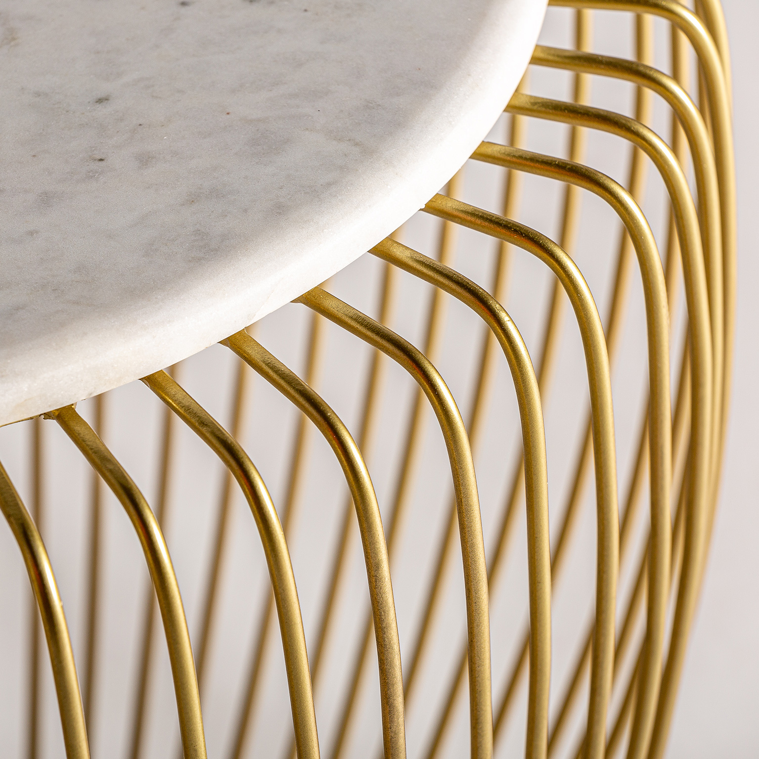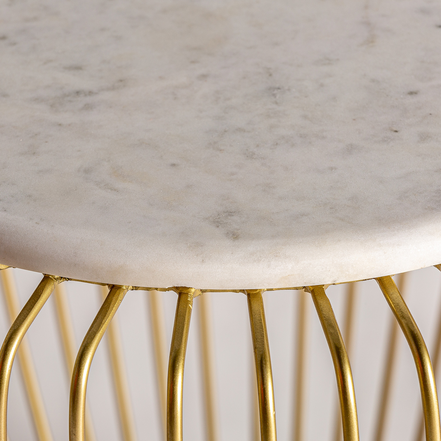 MESA AUXILIAR DIGNY, EN COLOR BLANCO/ORO, DE ESTILO ART DECO. FABRICADO EN HIERRO, COMBINADO CON MÁRMOL. PRODUCTO DESMONTABLE.