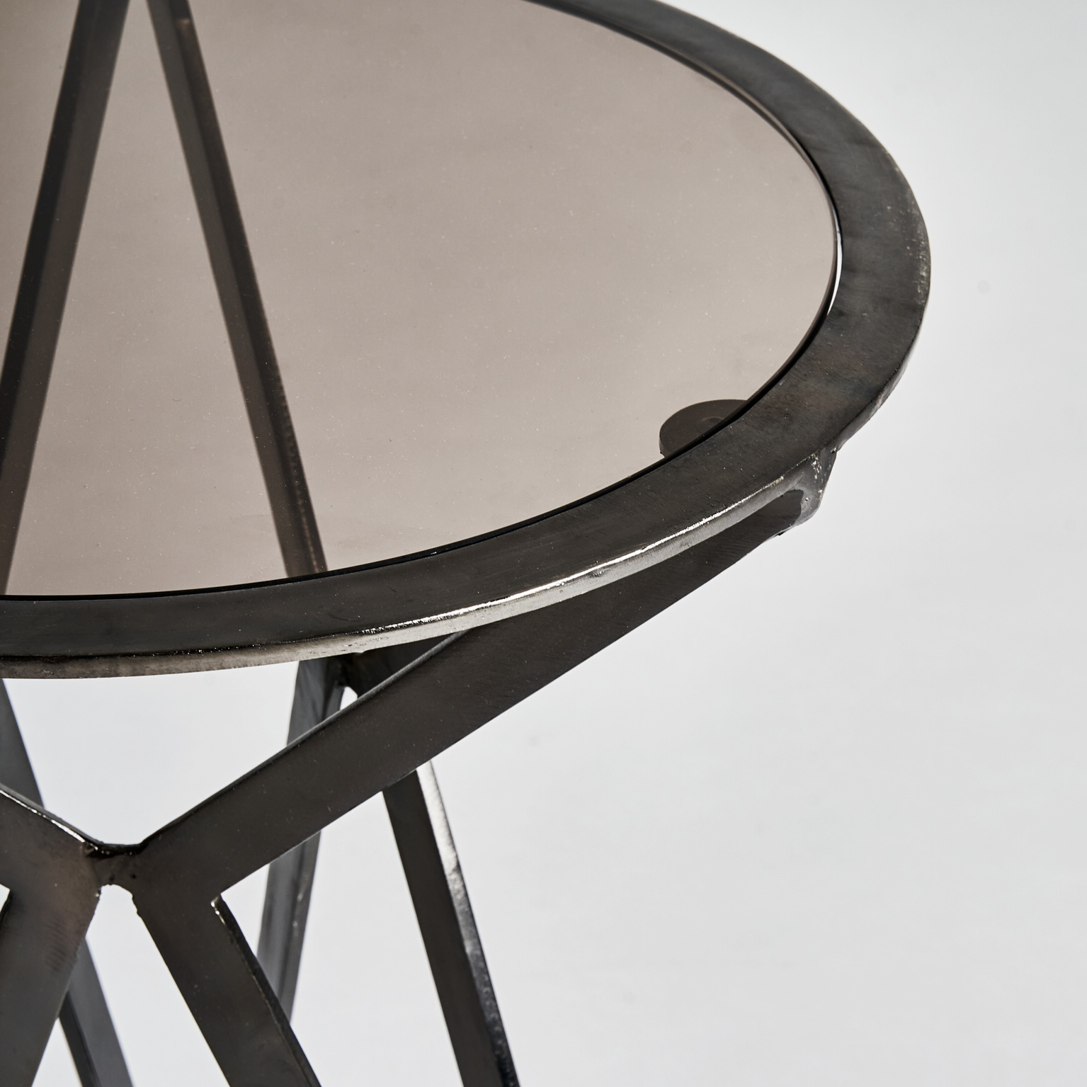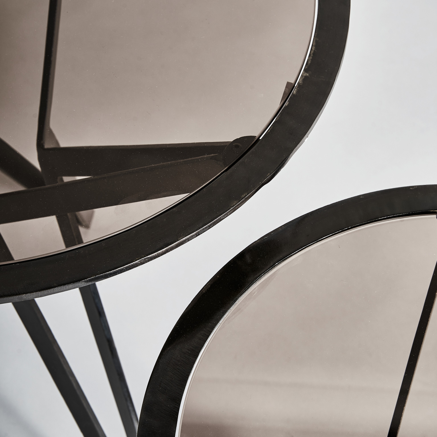 MESA AUXILIAR J/2 ROTHAU, EN COLOR NEGRO, DE ESTILO ART DECO. FABRICADO EN HIERRO, COMBINADO CON VIDRIO. PRODUCTO DESMONTABLE.