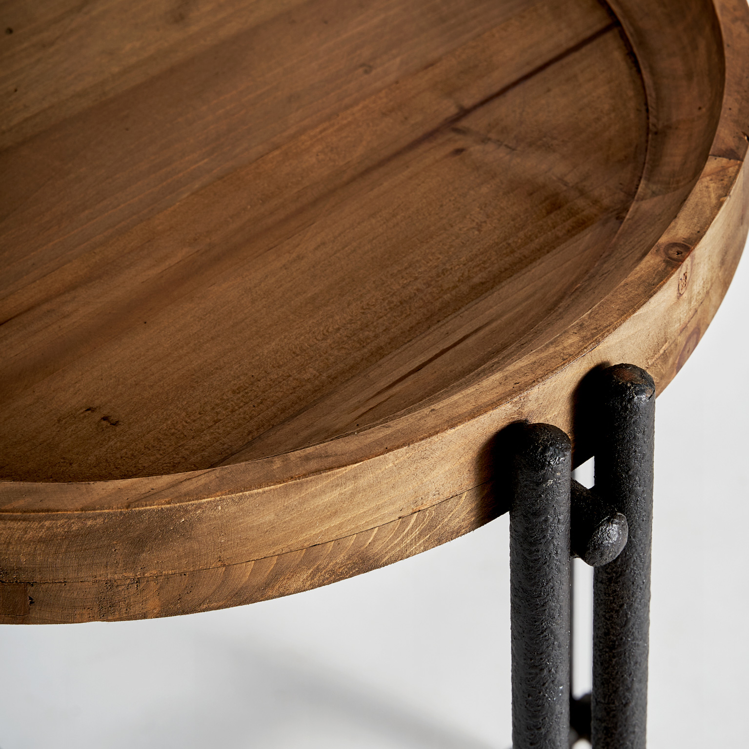MESA AUXILIAR MINOT, EN COLOR NATURAL ENVEJECIDO, DE ESTILO INDUSTRIAL. FABRICADO EN MADERA DE OLMO.