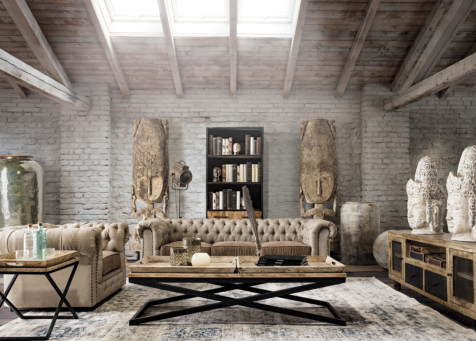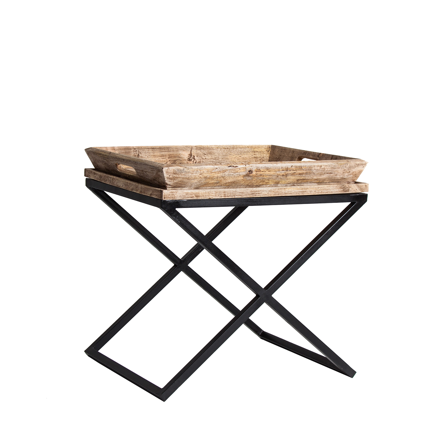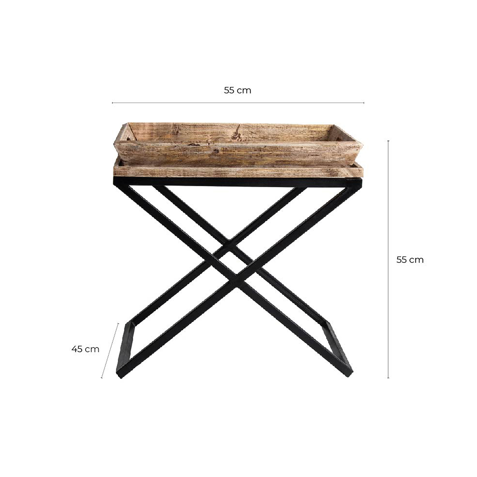 MESA AUXILIAR NEWAK, EN COLOR NEGRO/NATURAL ENVEJECIDO, DE ESTILO INDUSTRIAL. FABRICADO EN MADERA DE MANGO, COMBINADO CON HIERRO.
