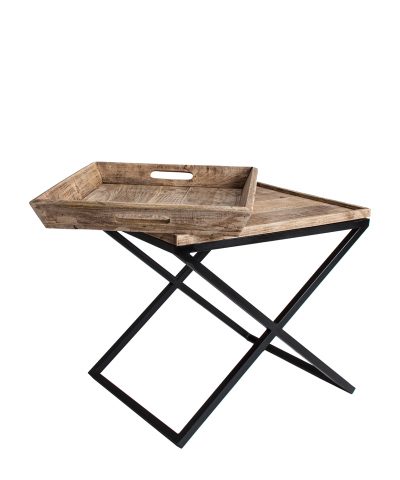 MESA AUXILIAR NEWAK, EN COLOR NEGRO/NATURAL ENVEJECIDO, DE ESTILO INDUSTRIAL. FABRICADO EN MADERA DE MANGO, COMBINADO CON HIERRO.