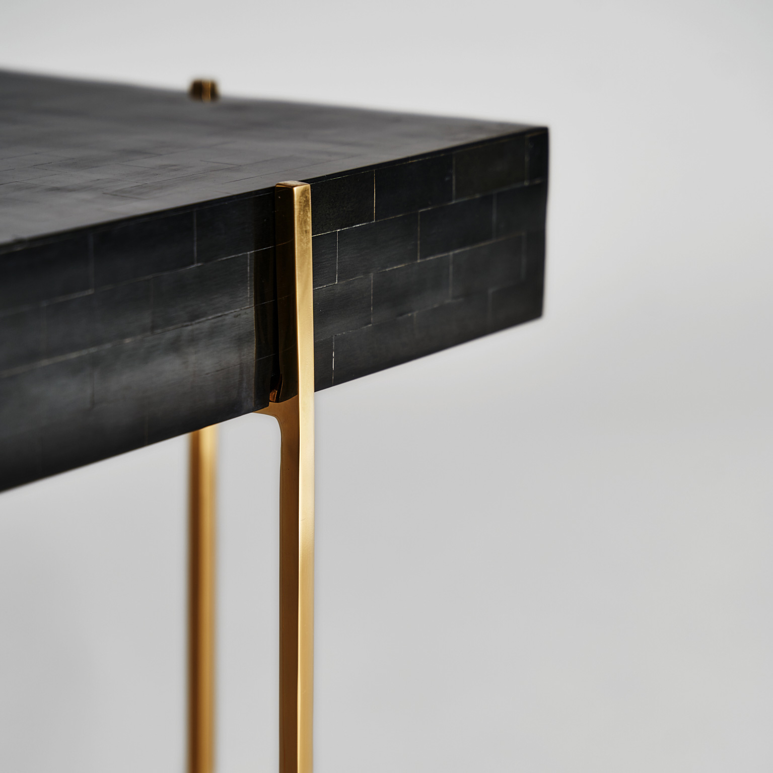 MESA AUXILIAR ZONZA, EN COLOR NEGRO/ORO, DE ESTILO ART DECO. FABRICADO EN HIERRO.