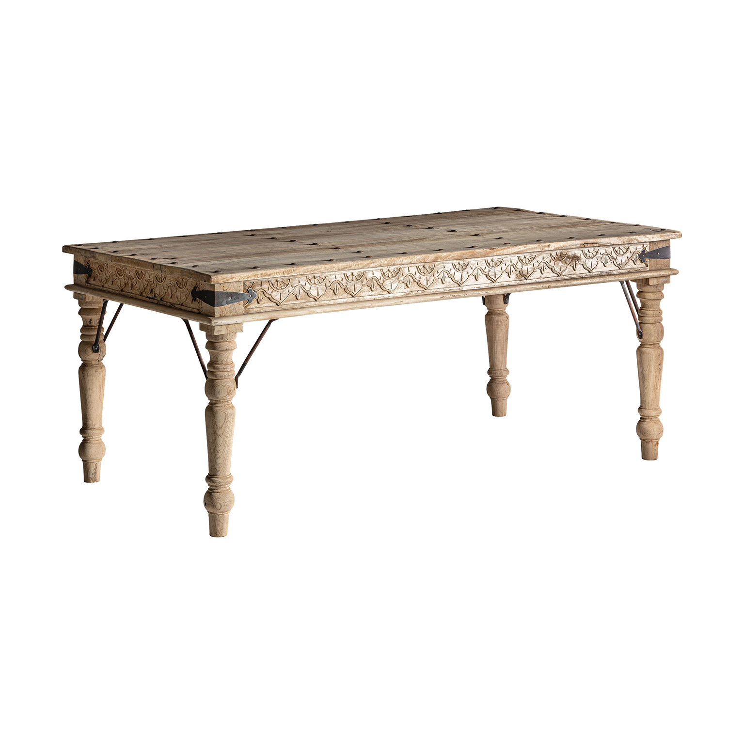 MESA COMEDOR BETAN, EN COLOR NATURAL ENVEJECIDO, DE ESTILO ÉTNICO. FABRICADO EN MADERA DE MANGO. PUEDE VARIAR DE COLOR FORMA Y TAMAÑO YA QUE SE TRATA DE UNA PIEZA ARTESANAL.
