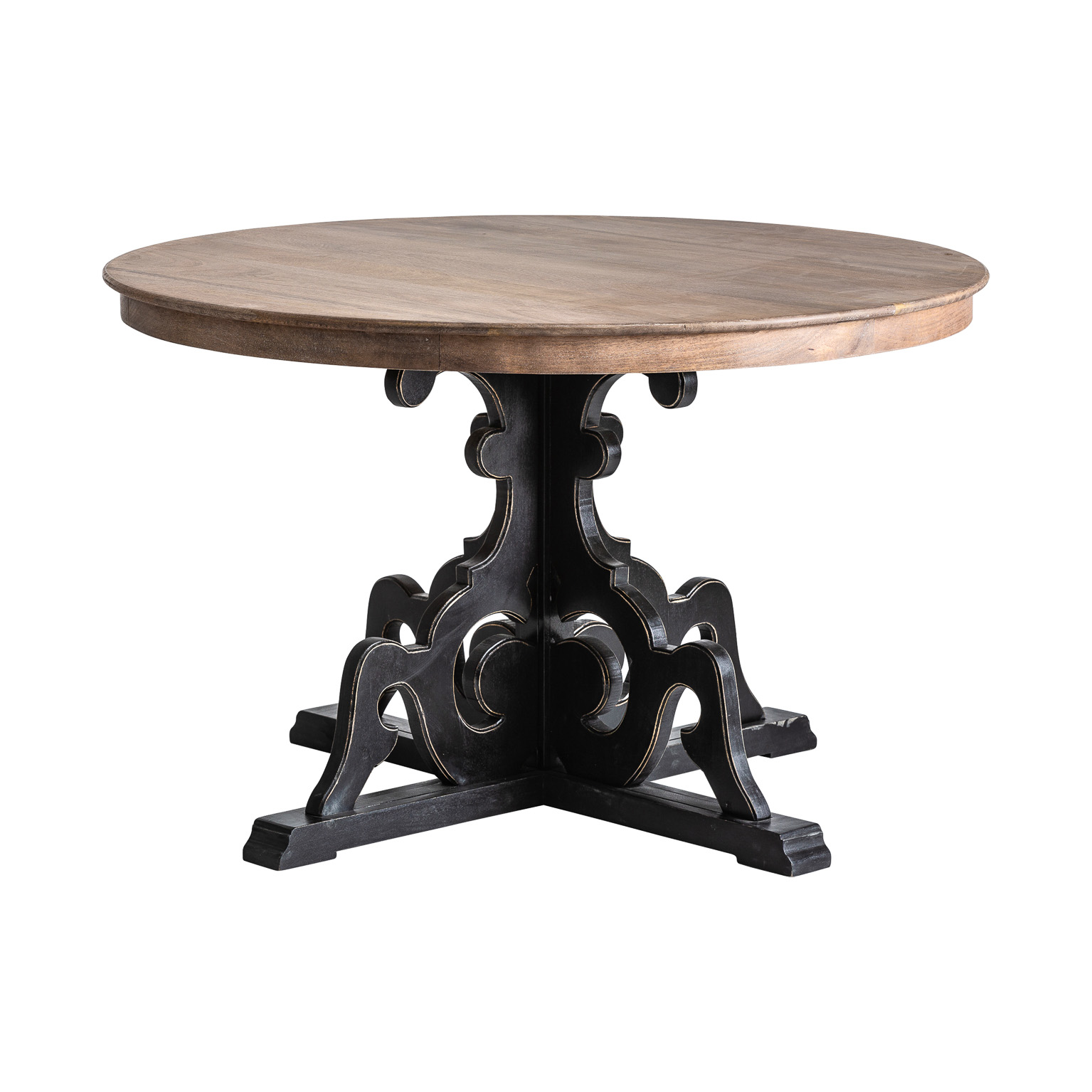 MESA COMEDOR LAON, EN COLOR NEGRO/NATURAL ENVEJECIDO, DE ESTILO PROVENZAL. FABRICADO EN MADERA DE MANGO. PRODUCTO DESMONTABLE.