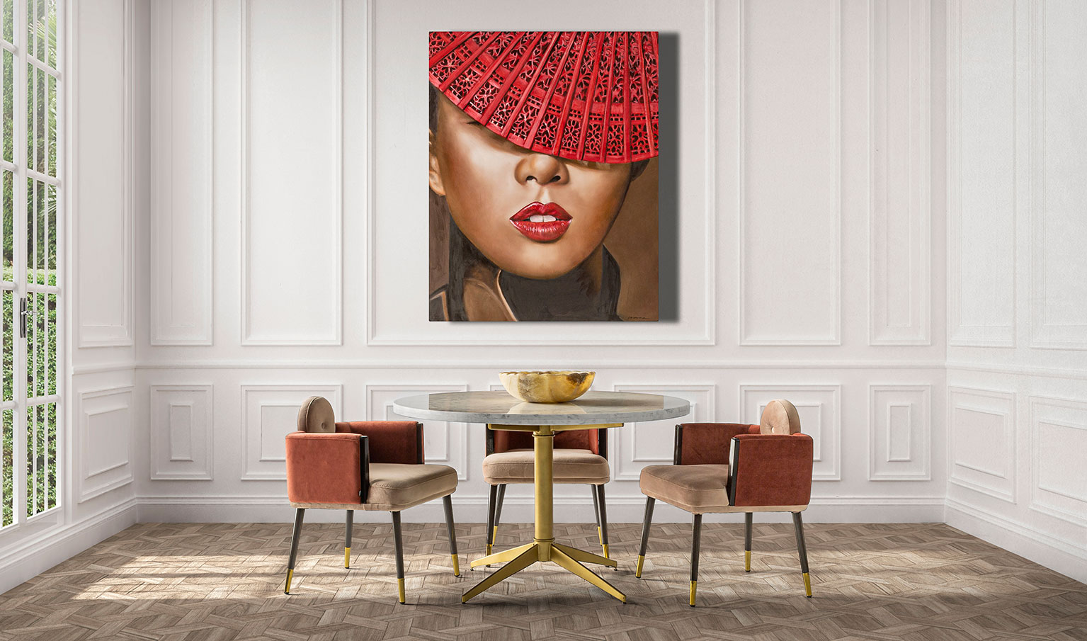 MESA COMEDOR SAYDA, EN COLOR BLANCO/ORO, DE ESTILO ART DECO. FABRICADO EN HIERRO, COMBINADO CON MÁRMOL. PRODUCTO DESMONTABLE.