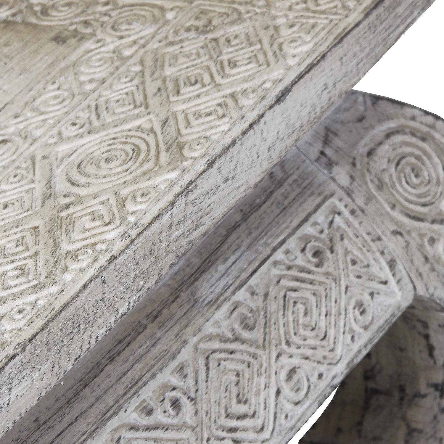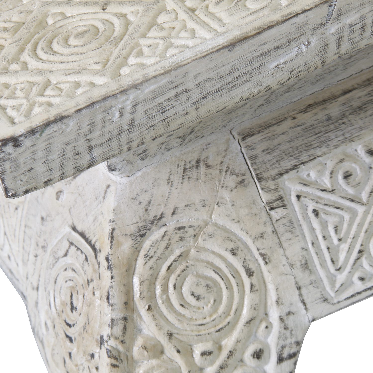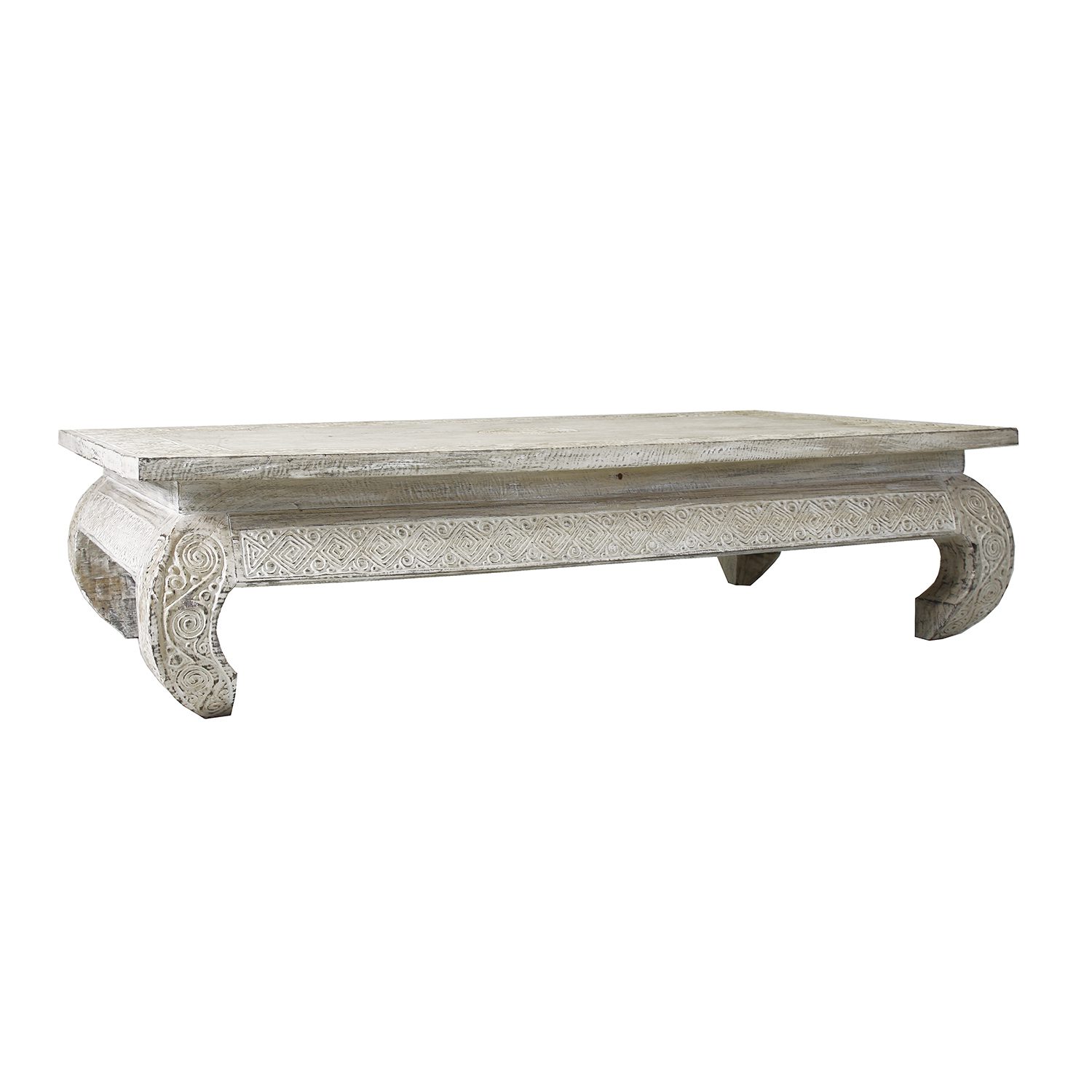MESA DE CENTRO RECTANGULAR ESTAMBUL, EN COLOR BLANCO ROTO TALLADO, DE ESTILO ORIENTAL. FABRICADO EN MADERA MINDI. OPIUM EN TALLA.