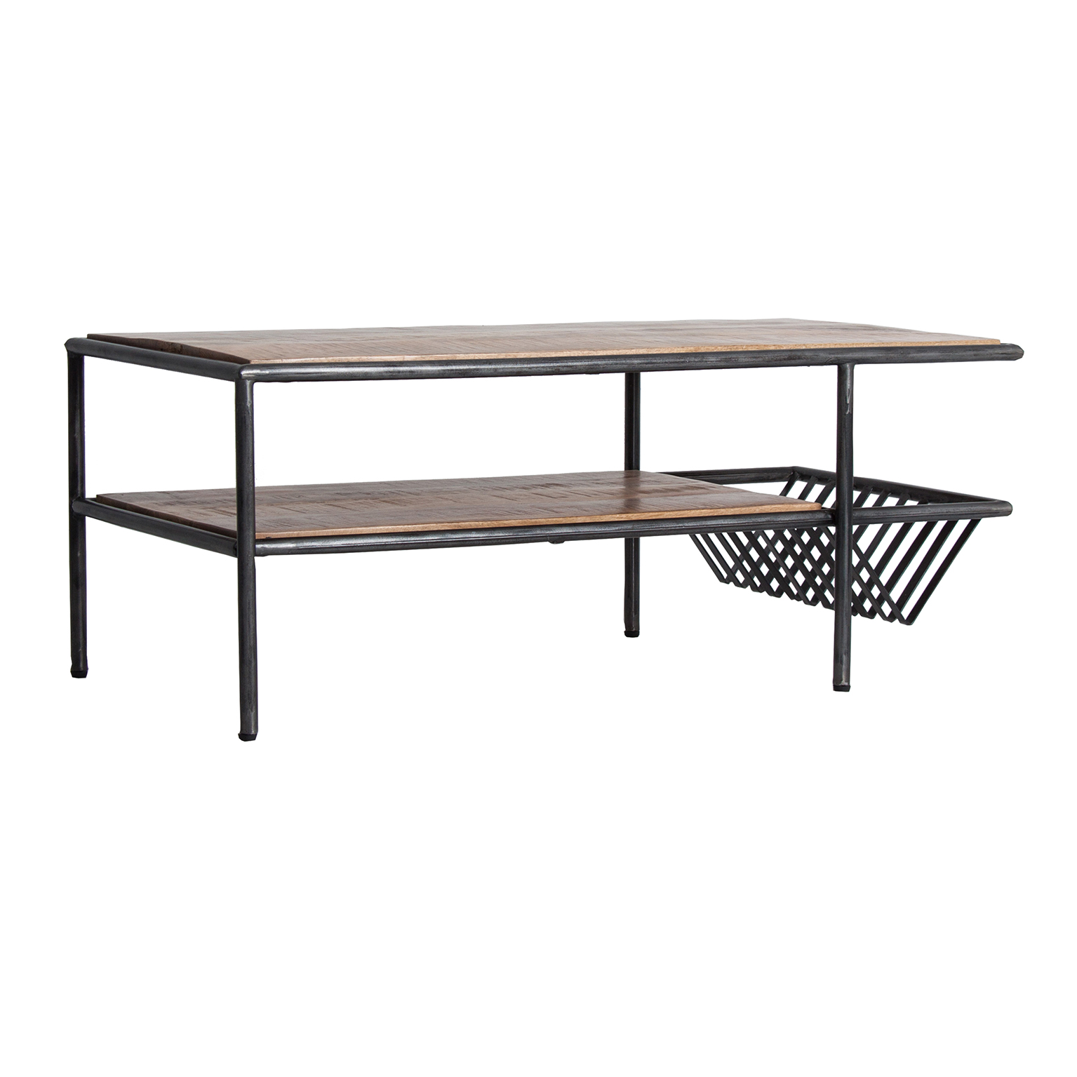 MESA DE CENTRO GAFFNEY, EN COLOR NEGRO/NATURAL, DE ESTILO INDUSTRIAL. FABRICADO EN HIERRO, COMBINADO CON MADERA DE MANGO.